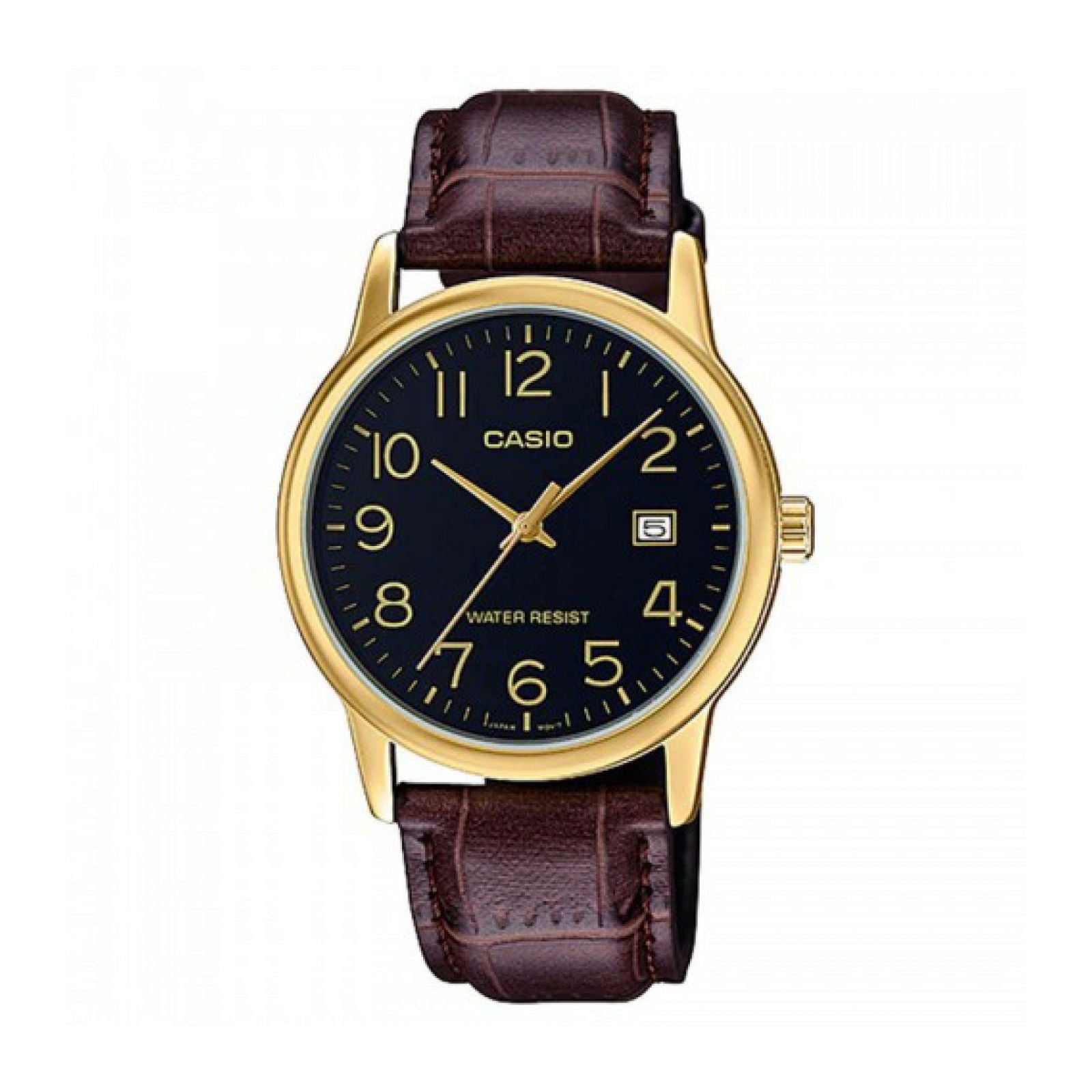 Reloj casio mtpv002gl_1b para hombre, tamaño de la caja 44 mm de acero inoxidable, tamaño del pulso 220 mm de cuero, color marrón, pulso de 220 mm, resistencia al agua hasta 50 metros