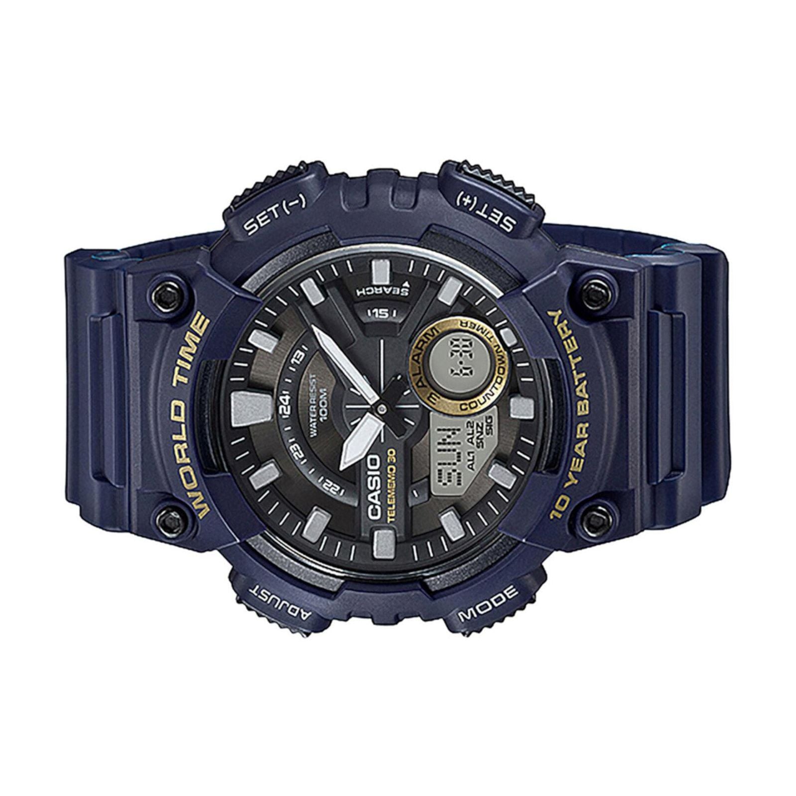 Reloj casio aeq_110w_2av para hombre, tamaño de la caja 50 mm de resina, tamaño del pulso 160-220 mm de resina, color azul, pulso de 160-220 mm, resistencia al agua hasta 100 metros