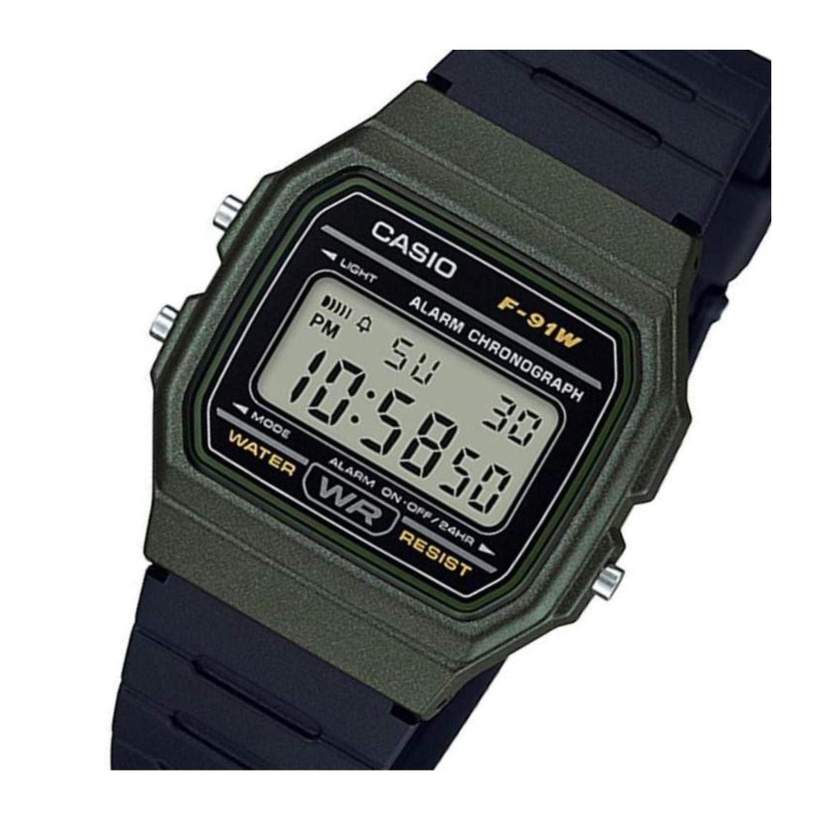 Reloj casio f-91wm-3a f-91wm-3a para hombre, tamaño de la caja 38 mm de resina, tamaño del pulso 220 mm de resina, color negro, pulso de 220 mm, resistencia al agua hasta 100 metros