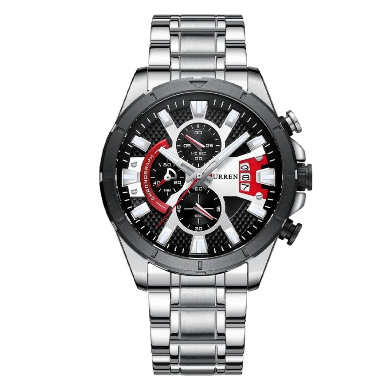 Curren tiene una amplia gama de relojes y que en su mayoría apuntan a los relojes sofisticados. Está hecho con una tecnología innovadora y de alta precisión que proporciona el tiempo de mantenimiento en comparación con los demás viene grabados en la parte superior e inferior con su logo, igualmente en la hebilla y con una etiqueta atada a un extremo del reloj que los identifica.
