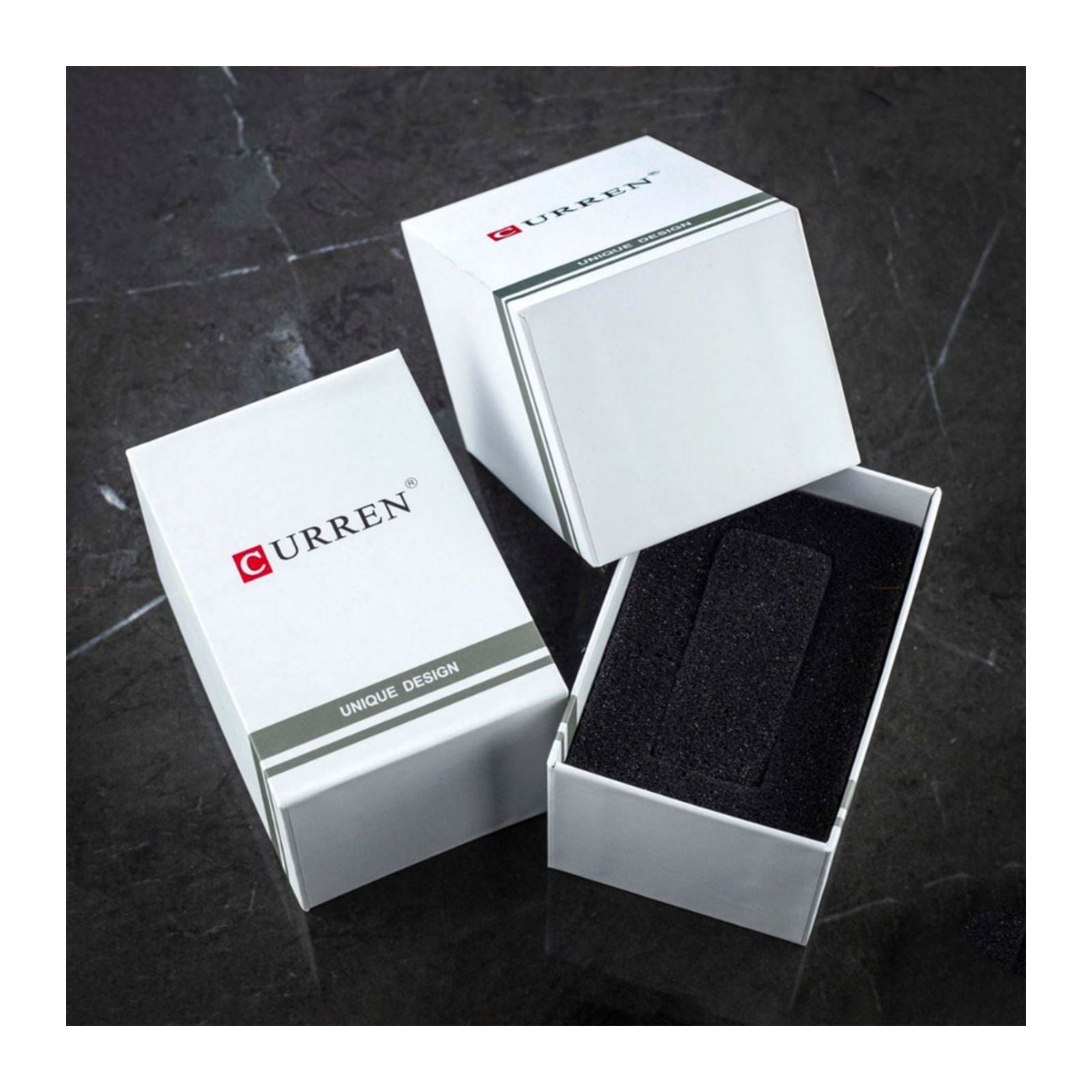 Curren tiene una amplia gama de relojes y que en su mayoría apuntan a los relojes sofisticados. Está hecho con una tecnología innovadora y de alta precisión que proporciona el tiempo de mantenimiento en comparación con los demás viene grabados en la parte superior e inferior con su logo, igualmente en la hebilla y con una etiqueta atada a un extremo del reloj que los identifica.