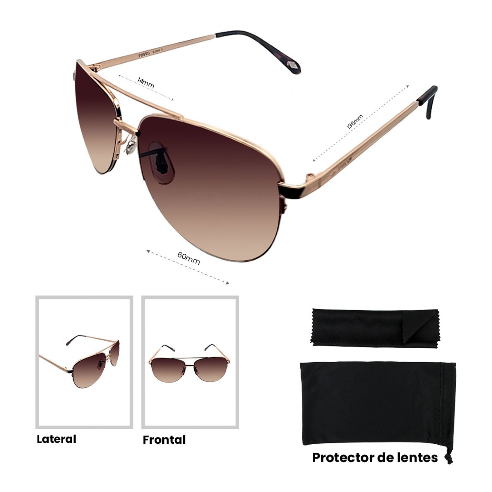 Gafas fossil color dorado para mujer protección 100% uv lente en policarbonato marrón de 60 piloto