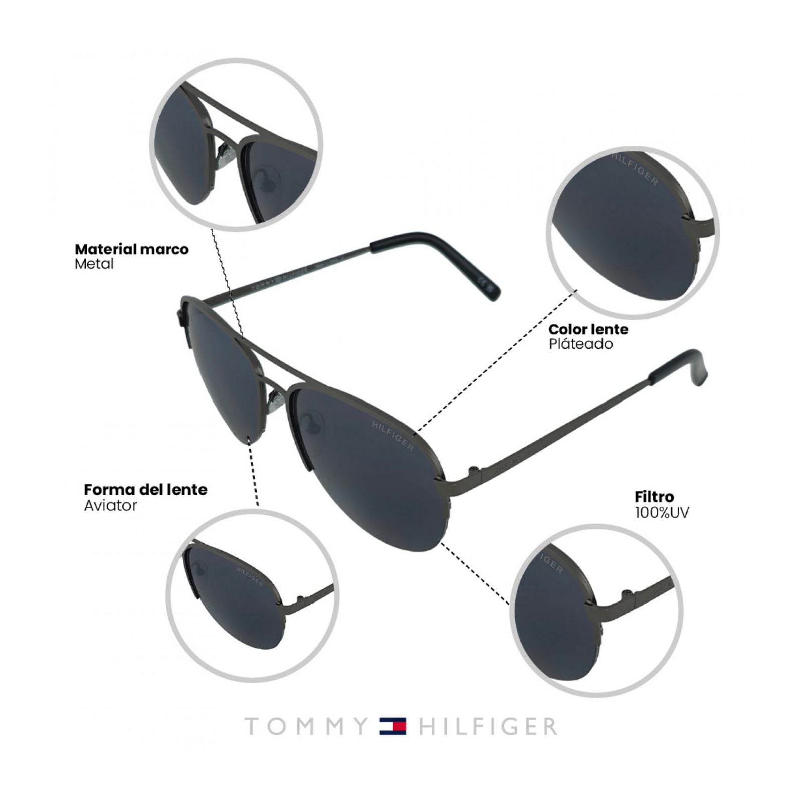 Gafas tommy hilfiger color gris para hombre protección 100% uv lente en policarbonato gris de 58 piloto