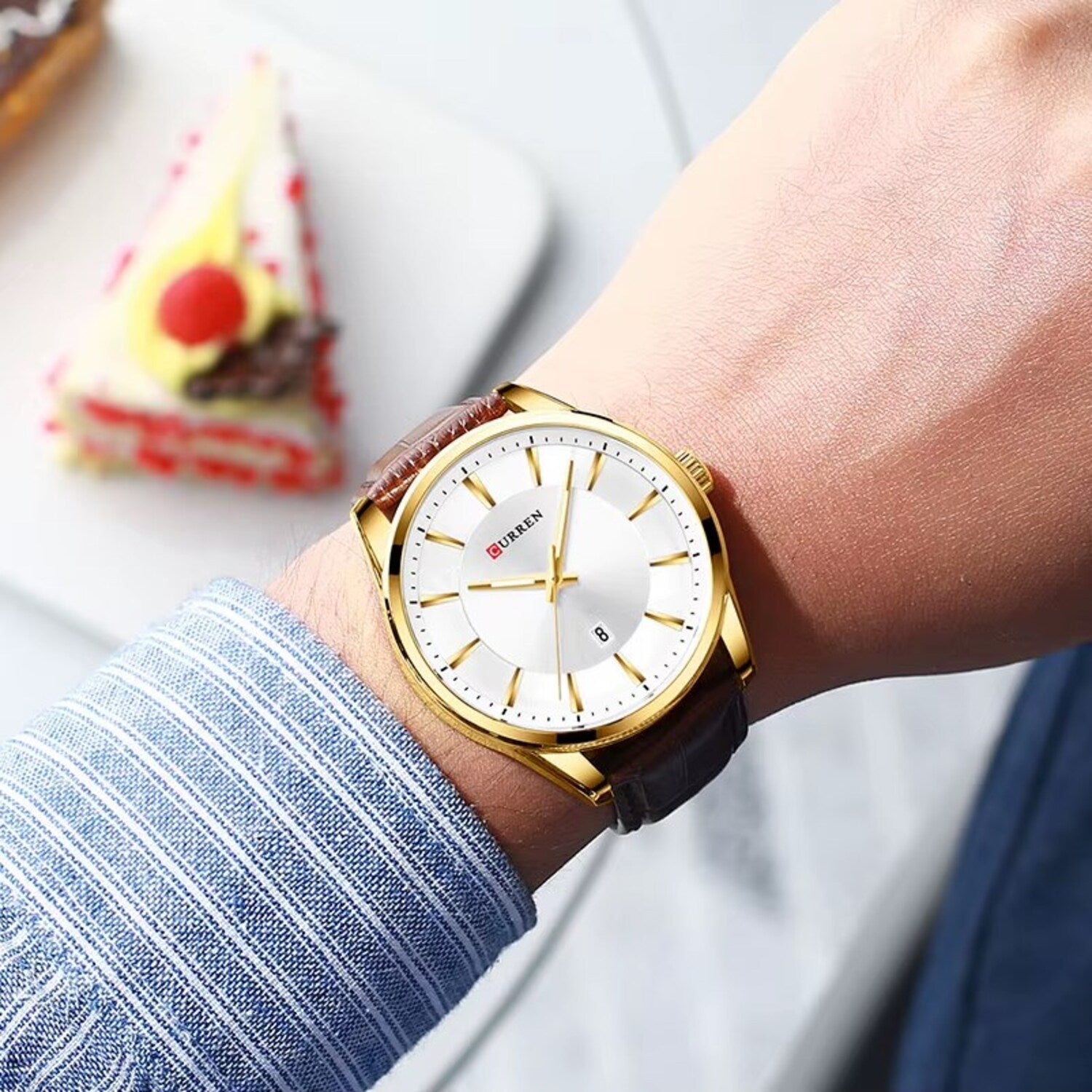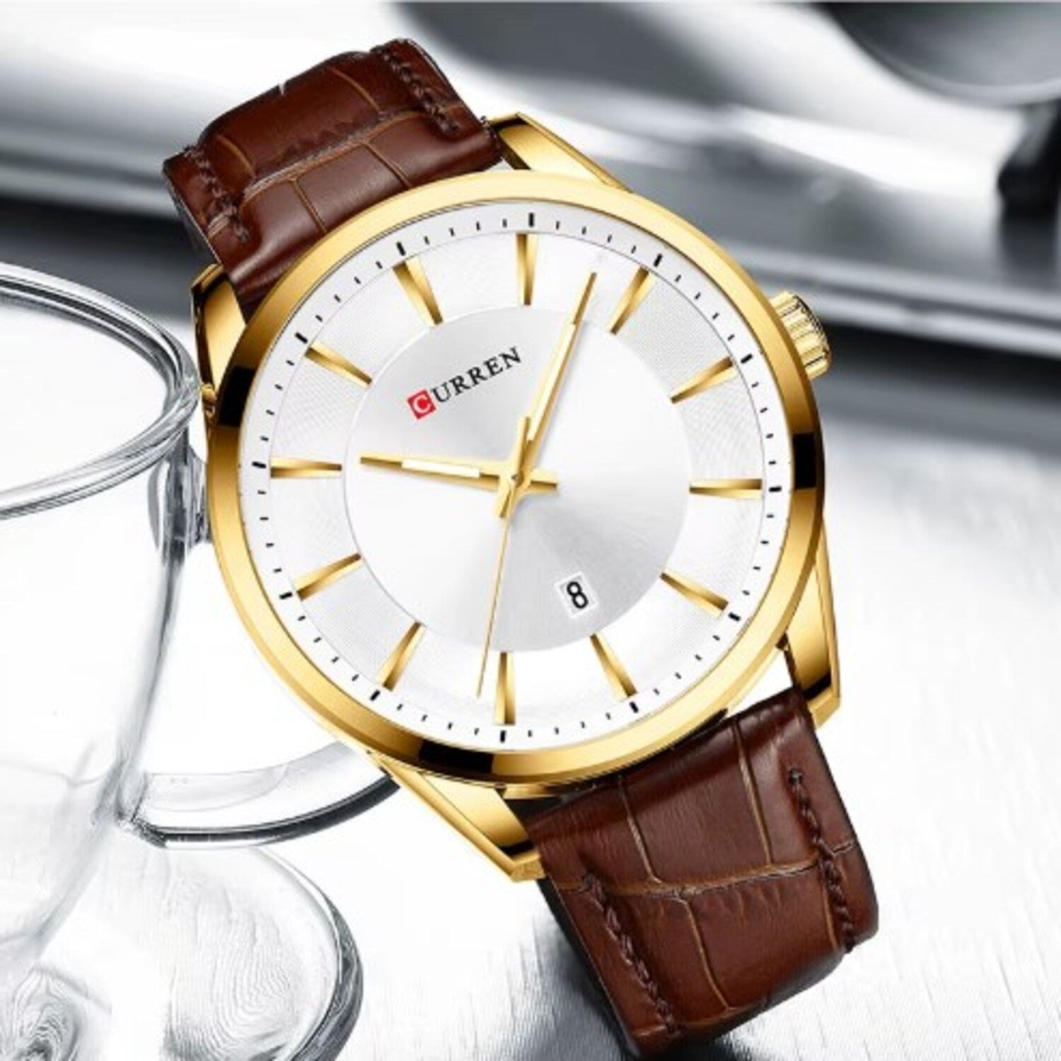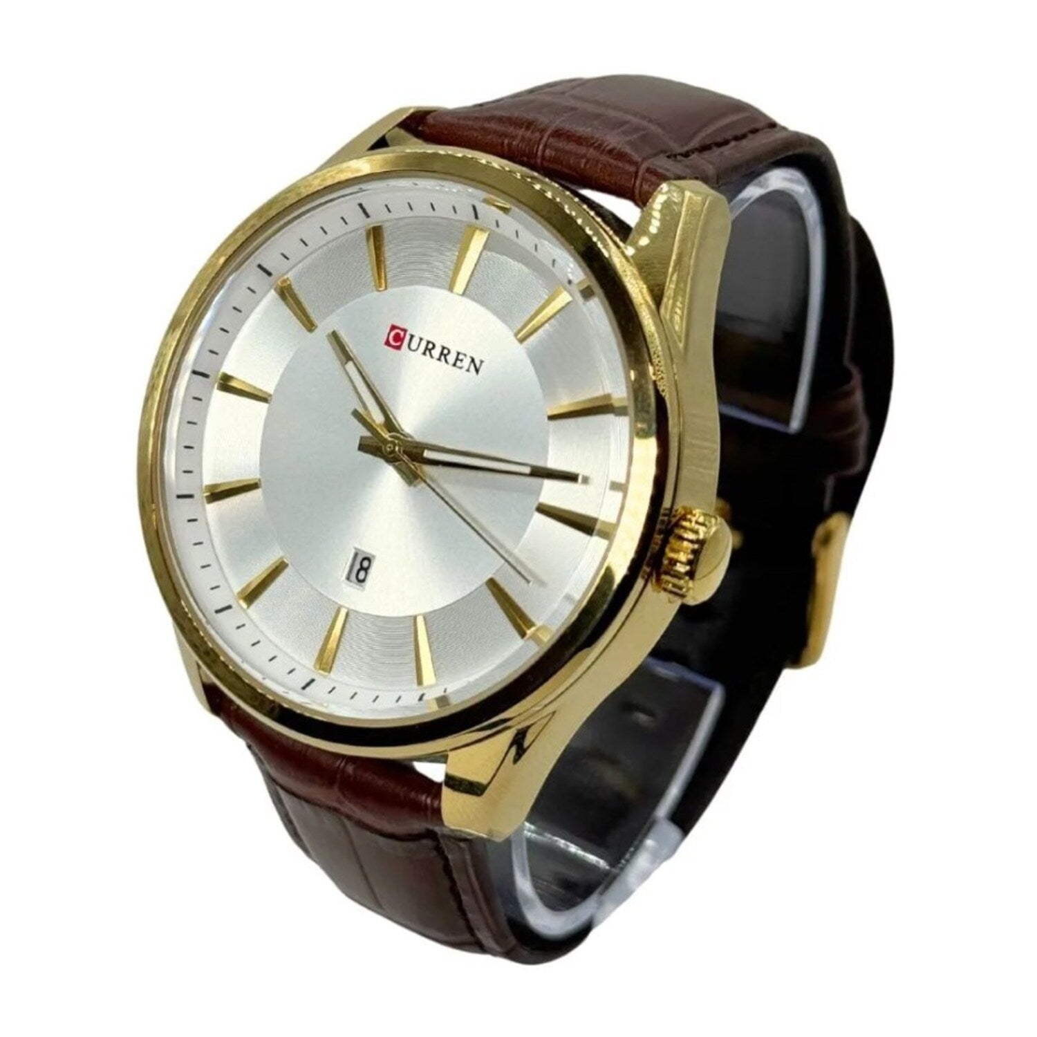 Curren tiene una amplia gama de relojes y que en su mayoría apuntan a los relojes sofisticados. Está hecho con una tecnología innovadora y de alta precisión que proporciona el tiempo de mantenimiento en comparación con los demás viene grabados en la parte superior e inferior con su logo, igualmente en la hebilla y con una etiqueta atada a un extremo del reloj que los identifica.