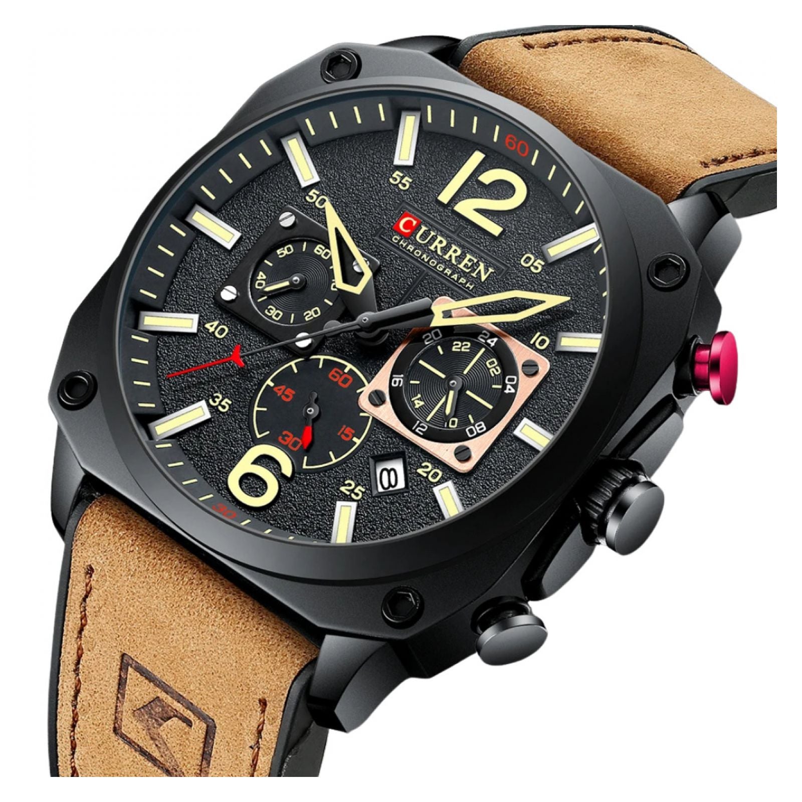 Curren tiene una amplia gama de relojes y que en su mayoría apuntan a los relojes sofisticados. Está hecho con una tecnología innovadora y de alta precisión que proporciona el tiempo de mantenimiento en comparación con los demás viene grabados en la parte superior e inferior con su logo, igualmente en la hebilla y con una etiqueta atada a un extremo del reloj que los identifica.