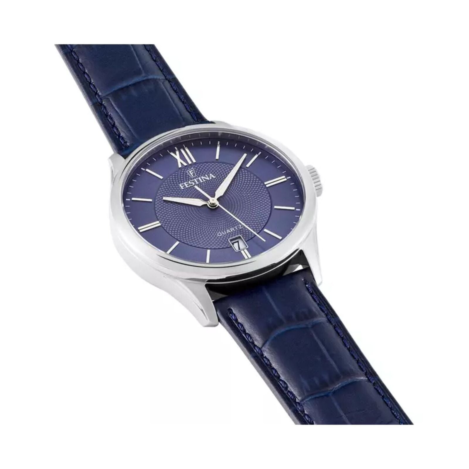 Reloj festina f20426/2 classic metal para hombre, tamaño de la caja 43 mm de acero inoxidable, tamaño del pulso 215 mm de cuero, color azul, pulso de 215 mm, resistencia al agua hasta 50 metros