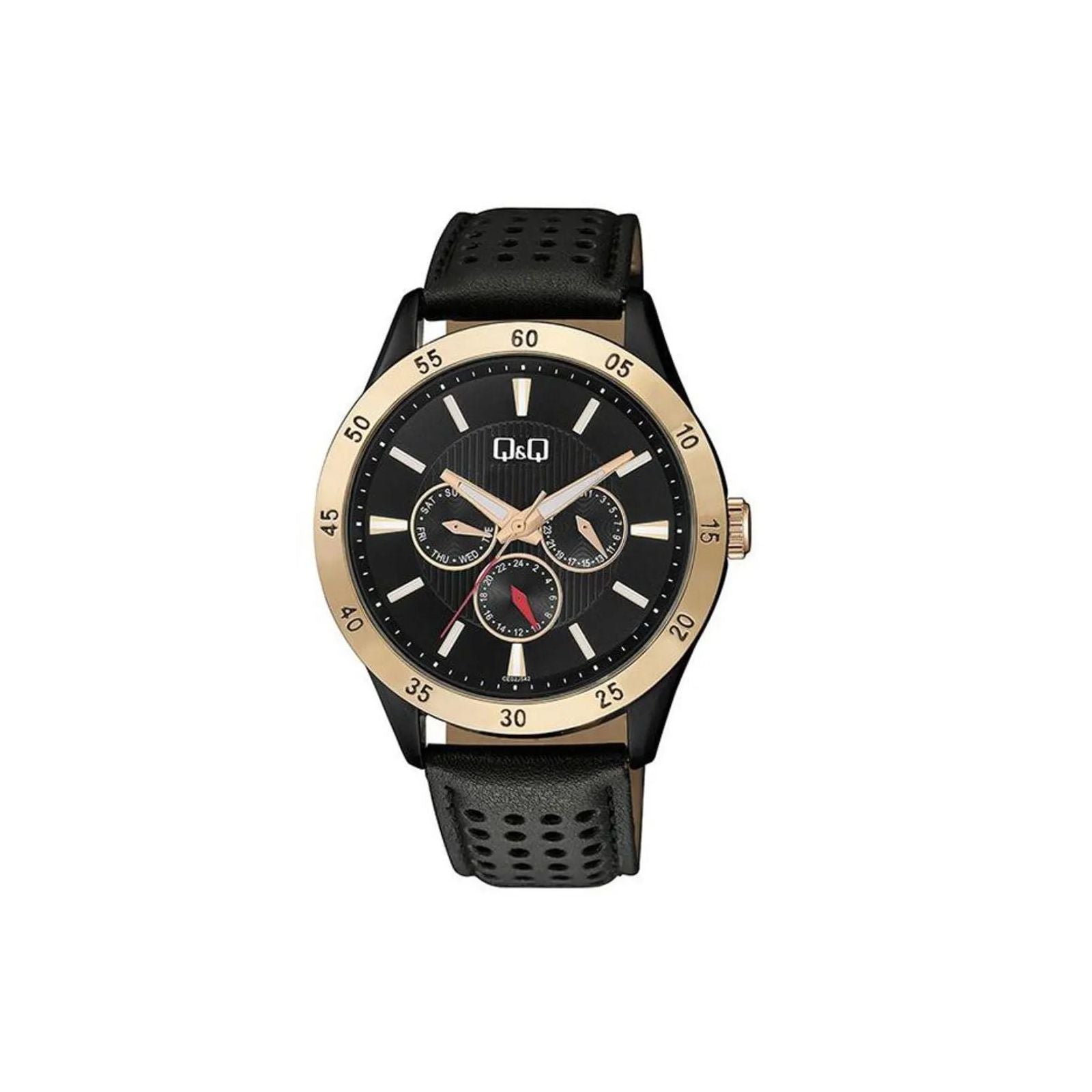 - ShortDescription: Reloj q&q para hombre, tamaño de la caja 44 de metal, tamaño del pulso 220 de cuero, color negro, ancho del pulso de 23 , resistencia al agua hasta 50 metros.