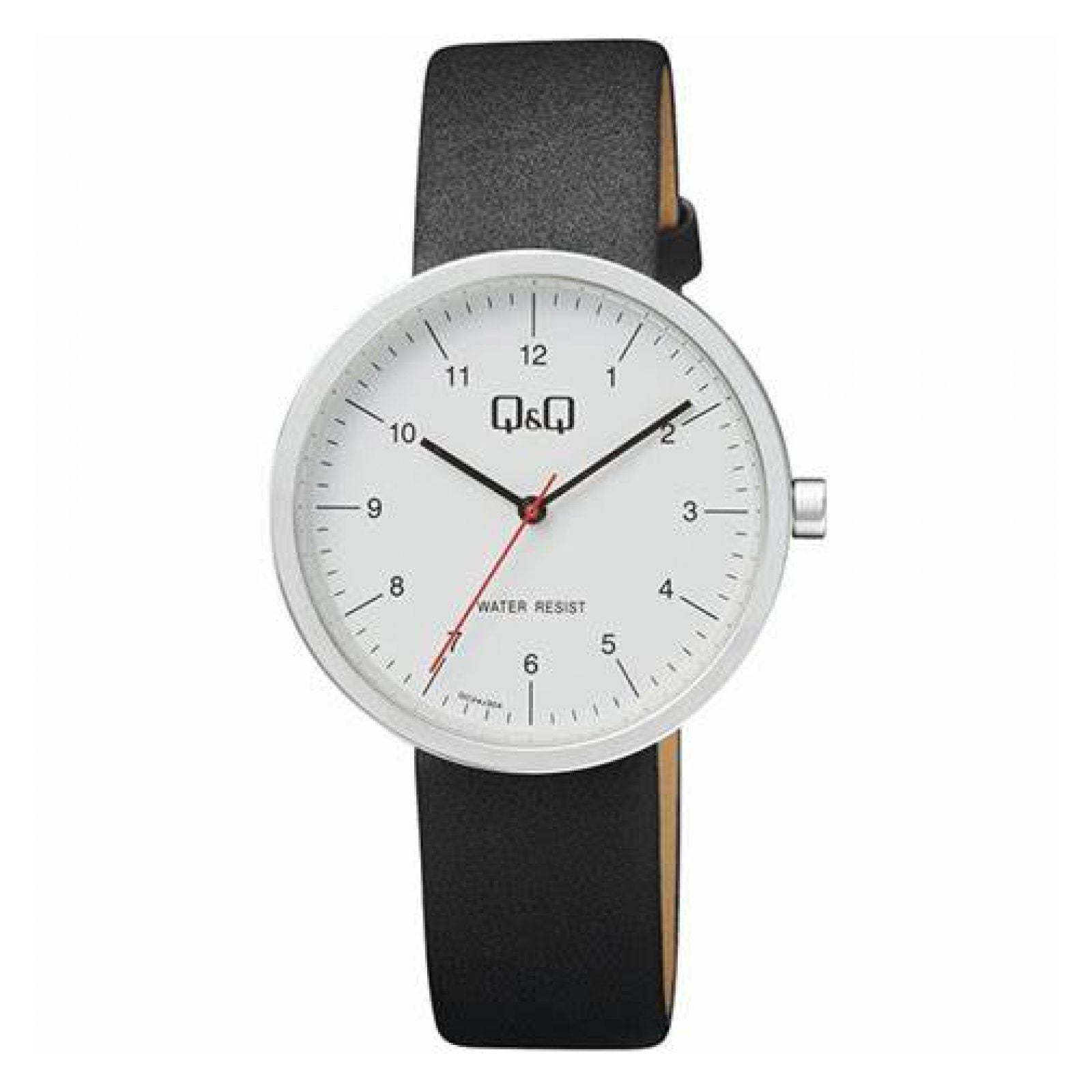 Reloj q&q qc24j304y q&q hombre para hombre, tamaño de la caja 40 mm de acero inoxidable, tamaño del pulso 220 mm de cuero, color negro, pulso de 220 mm, resistencia al agua hasta 30 metros