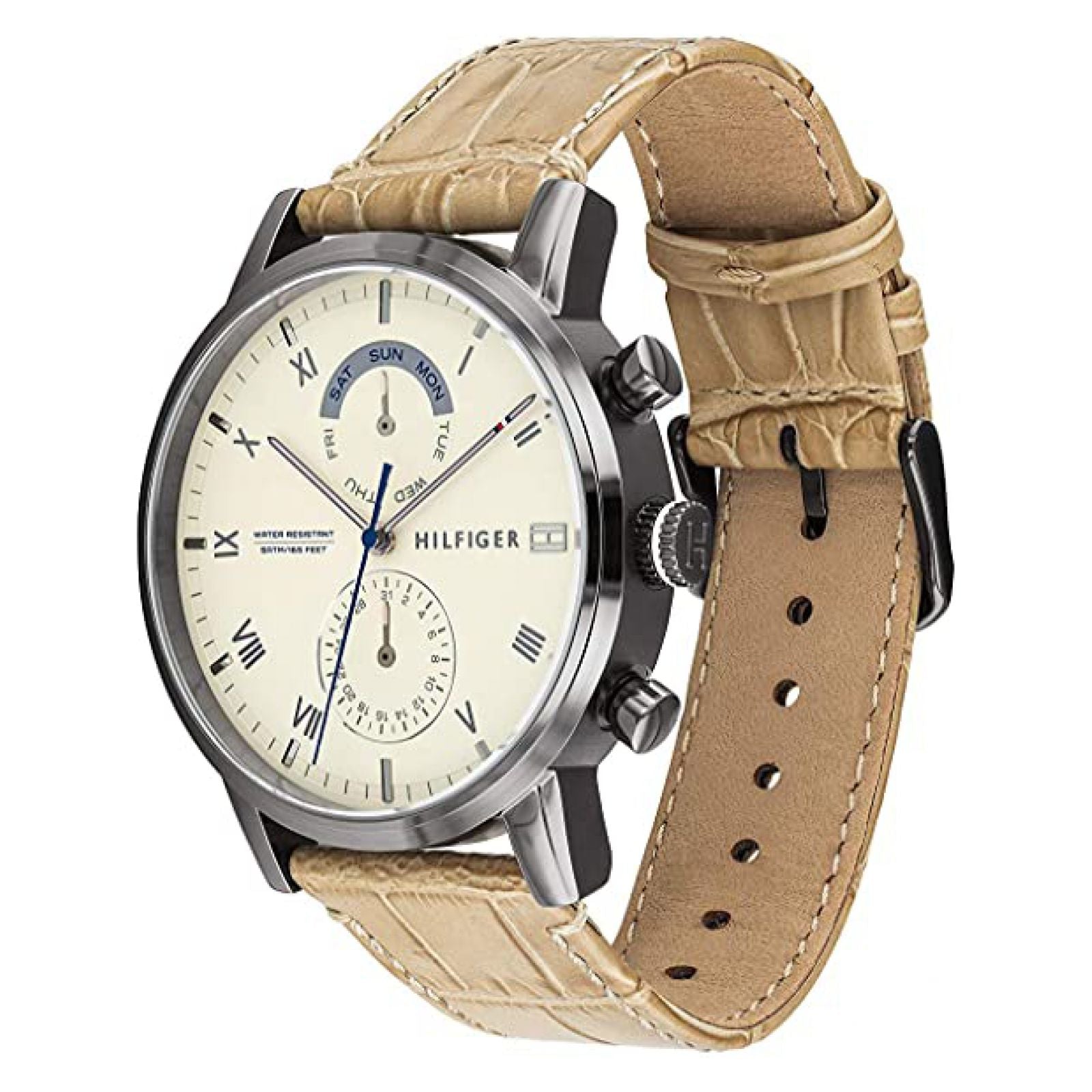 Reloj tommy hilfiger 1710399 para hombre, tamaño de la caja 44 mm de acero inoxidable, tamaño del pulso 220 mm de cuero, color beige, pulso de 220 mm, resistencia al agua hasta 30 metros