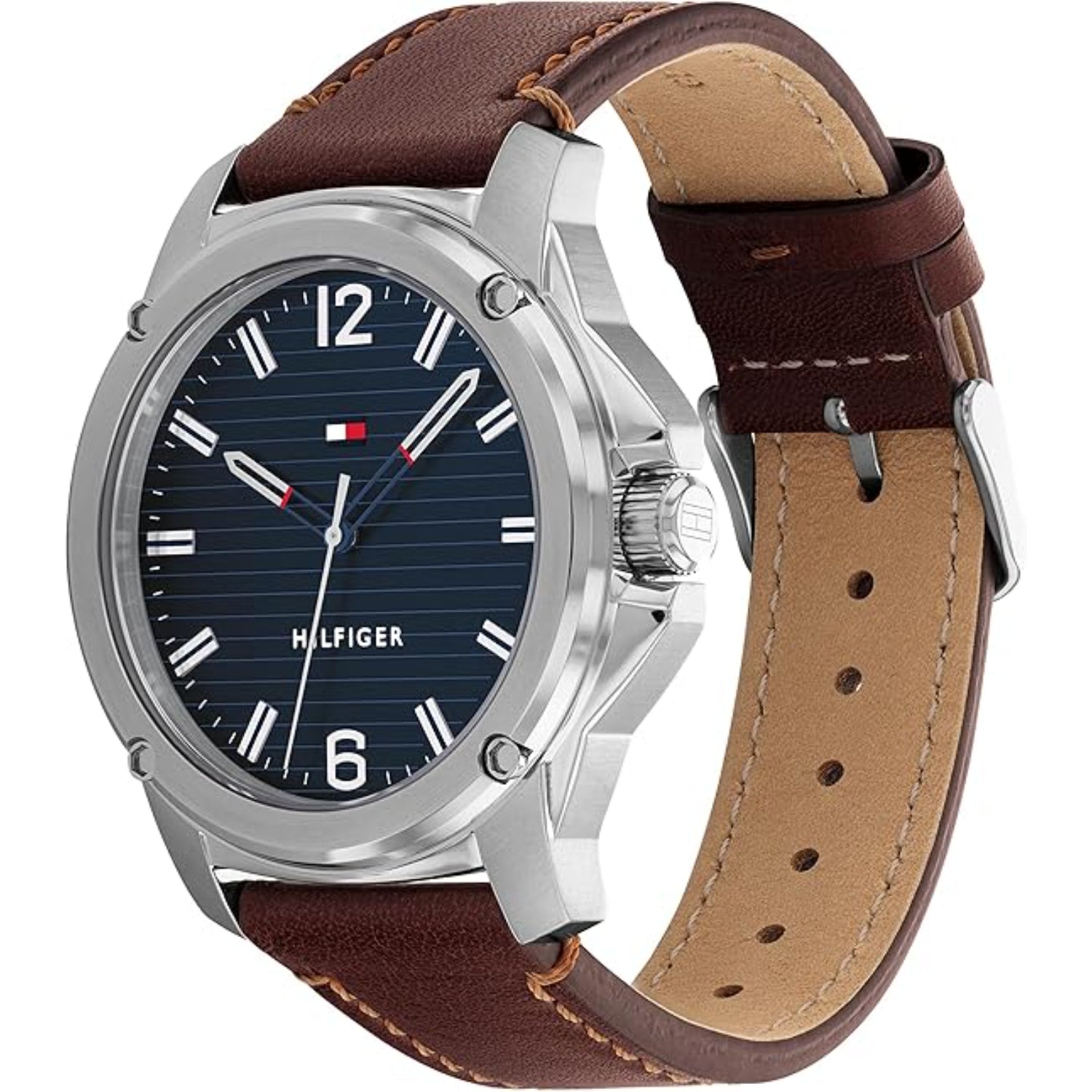 Reloj tommy hilfiger 1710484 jason para hombre, tamaño de la caja 44 mm de acero inoxidable, tamaño del pulso 220 mm de cuero, color marrón, pulso de 220 mm, resistencia al agua hasta 30 metros