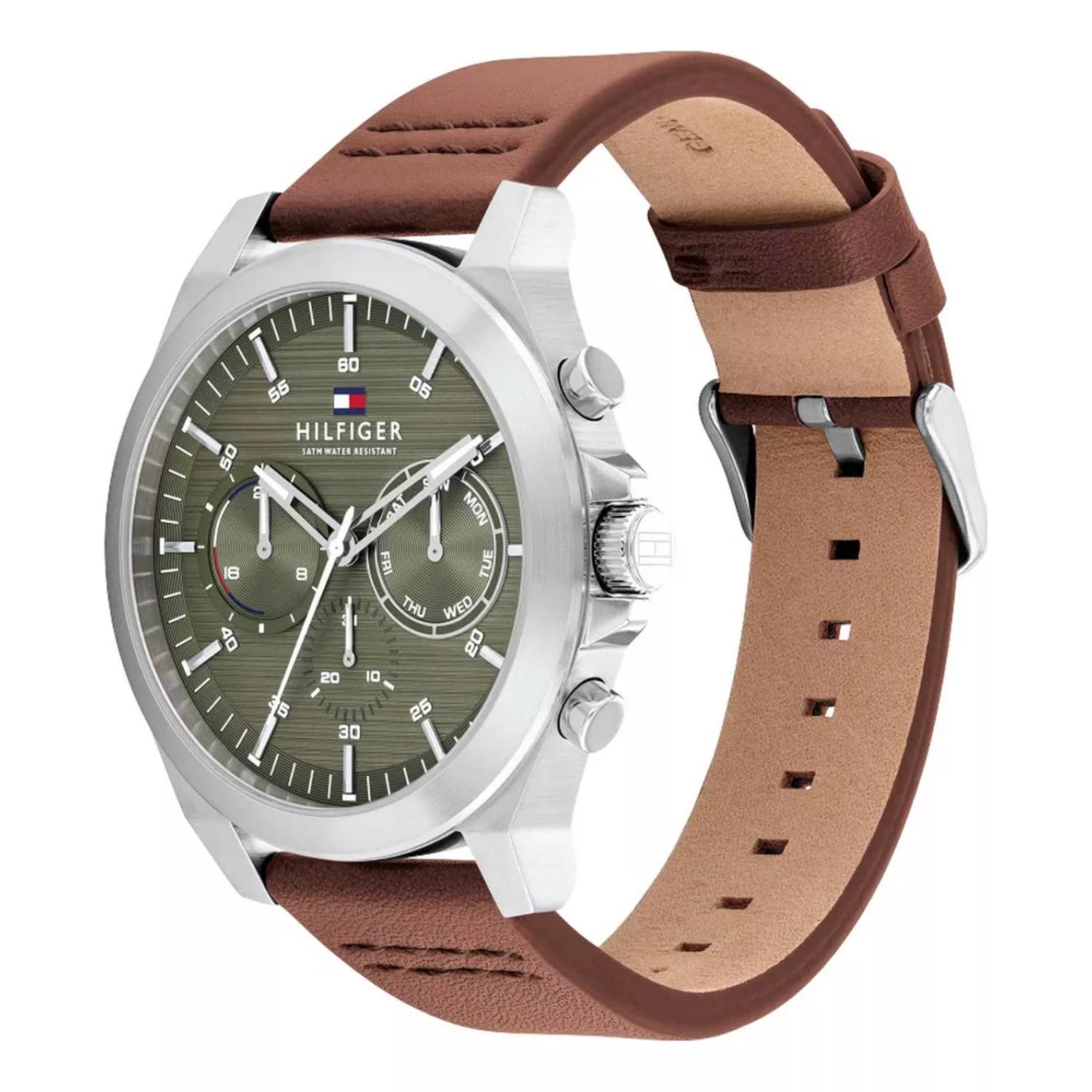 Reloj tommy hilfiger 1710522 lance para hombre, tamaño de la caja 44 mm de acero inoxidable, tamaño del pulso 210 mm de piel, color marrón, pulso de 210 mm, resistencia al agua hasta 30 metros