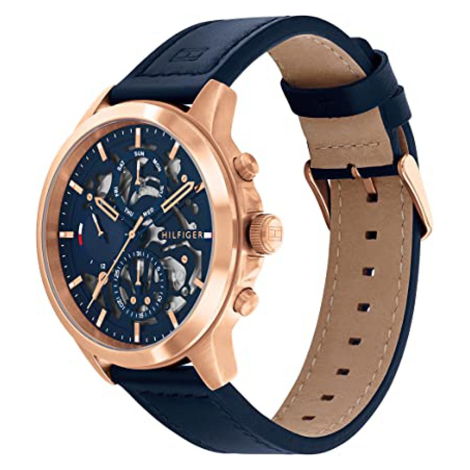 Reloj tommy hilfiger tmy1710475 para hombre, tamaño de la caja 44 mm de acero inoxidable, tamaño del pulso 220 mm de cuero, color azul, pulso de 220 mm, resistencia al agua hasta 50 metros