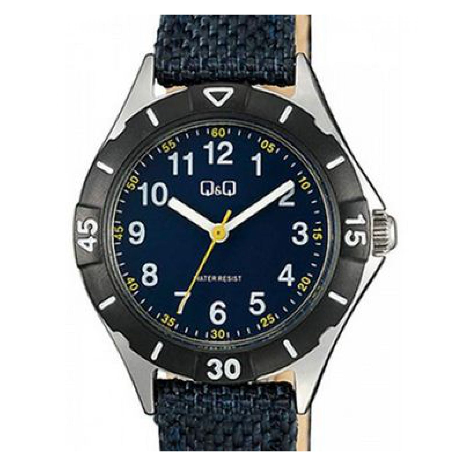 Reloj q&q qz75j325y q&q para mujer, tamaño de la caja 30 mm de acero inoxidable, tamaño del pulso 210 mm de cuero, color azul, pulso de 210 mm, resistencia al agua hasta 30 metros
