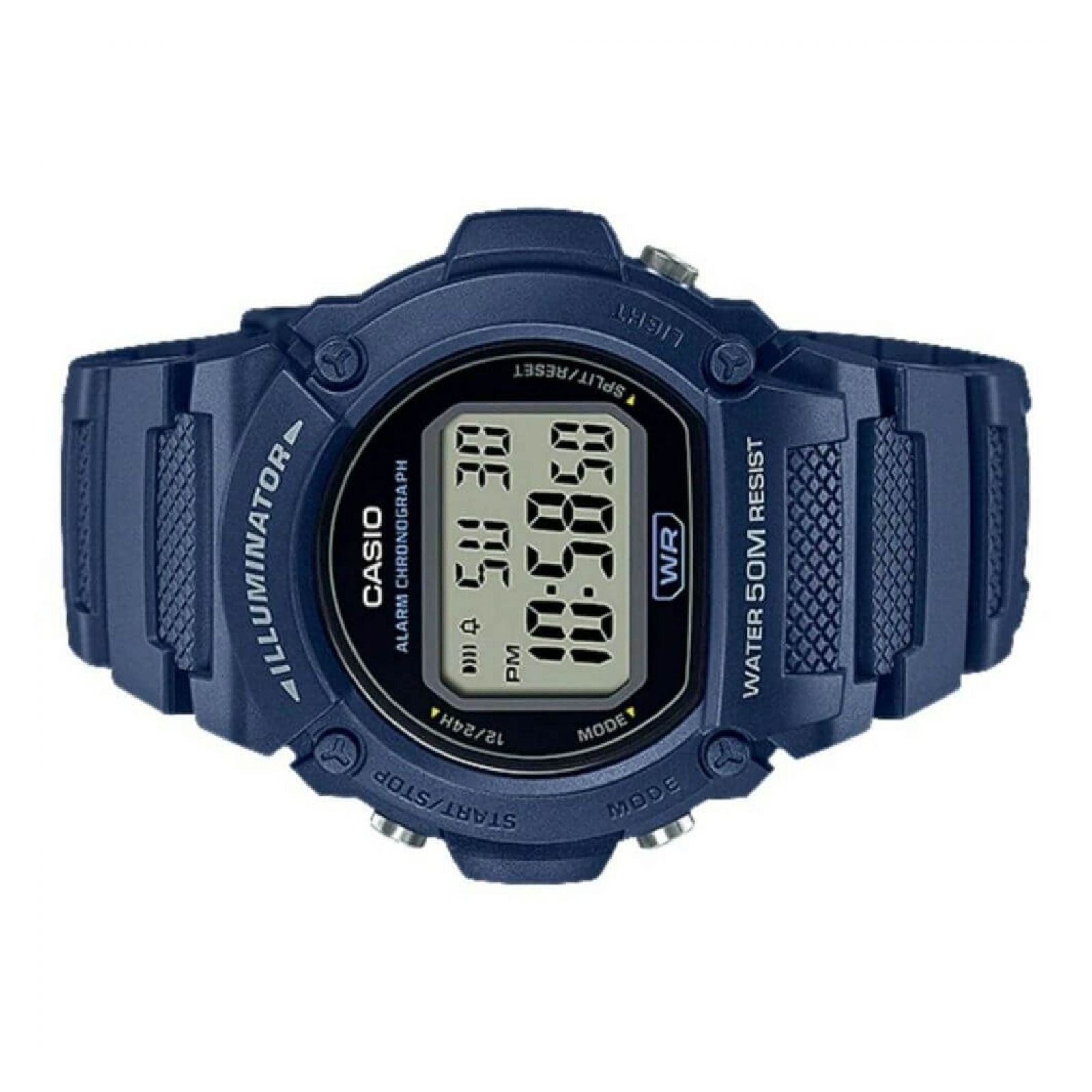 Reloj casio w219h-2avdf para hombre, tamaño de la caja 48 mm de resina, tamaño del pulso 210 mm de resina, color azul, pulso de 210 mm, resistencia al agua hasta 50 metros