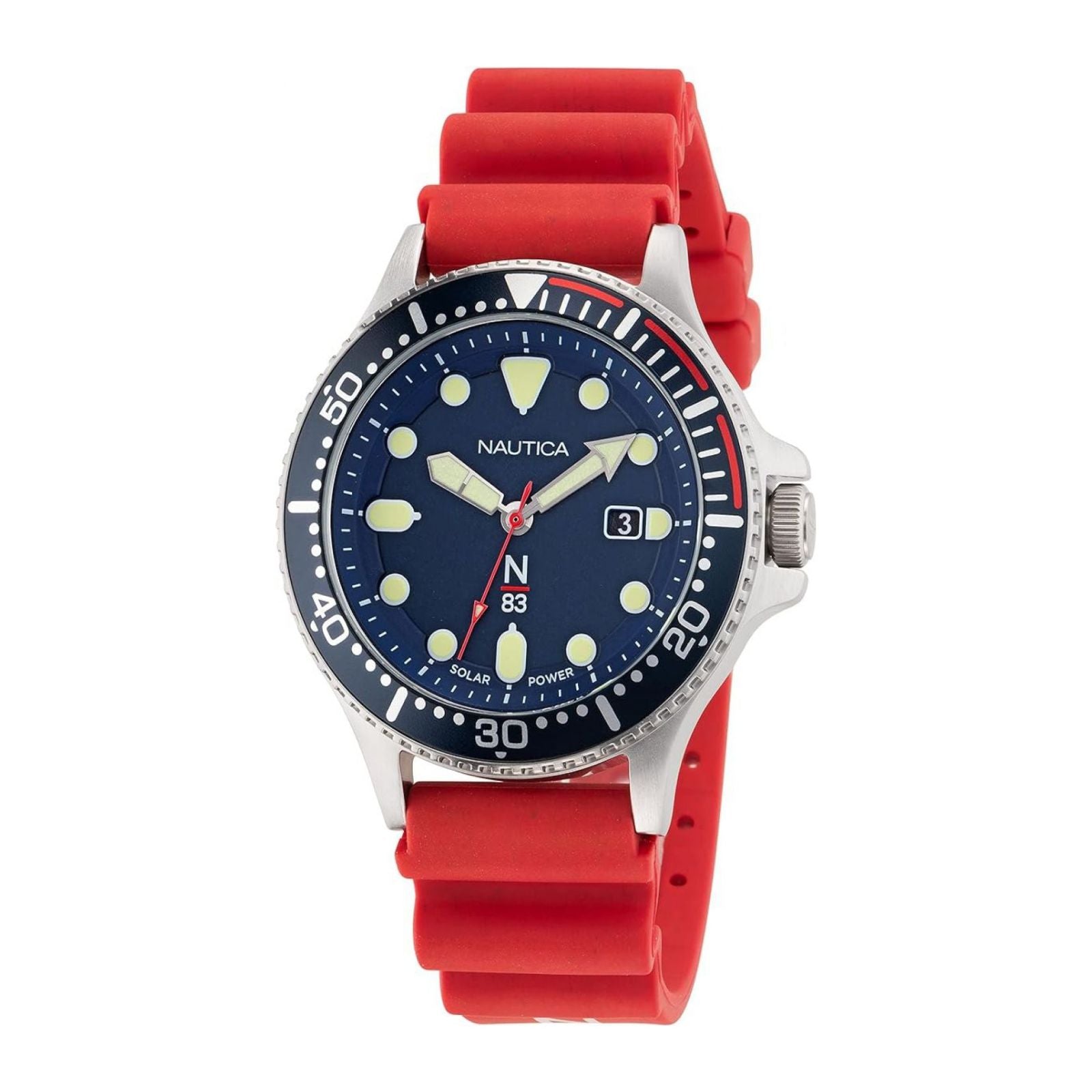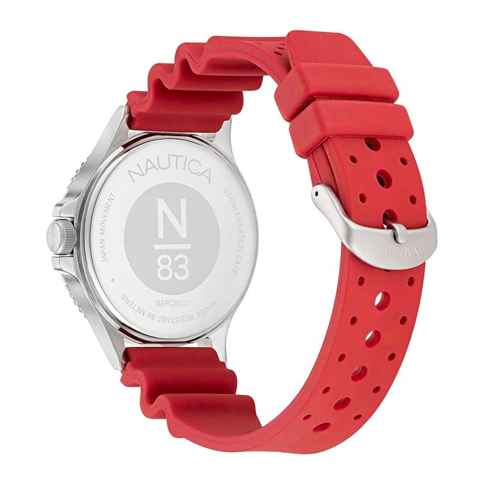 Reloj nautica napcbs301 cocoa beach para hombre, tamaño de la caja 43 mm de acero inoxidable, tamaño del pulso 220 mm de silicona, color rojo, pulso de 220 mm, resistencia al agua hasta 50 metros
