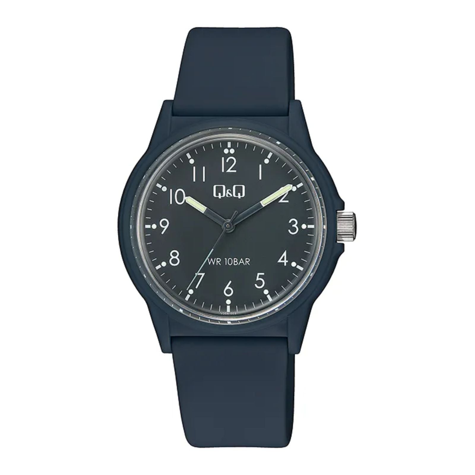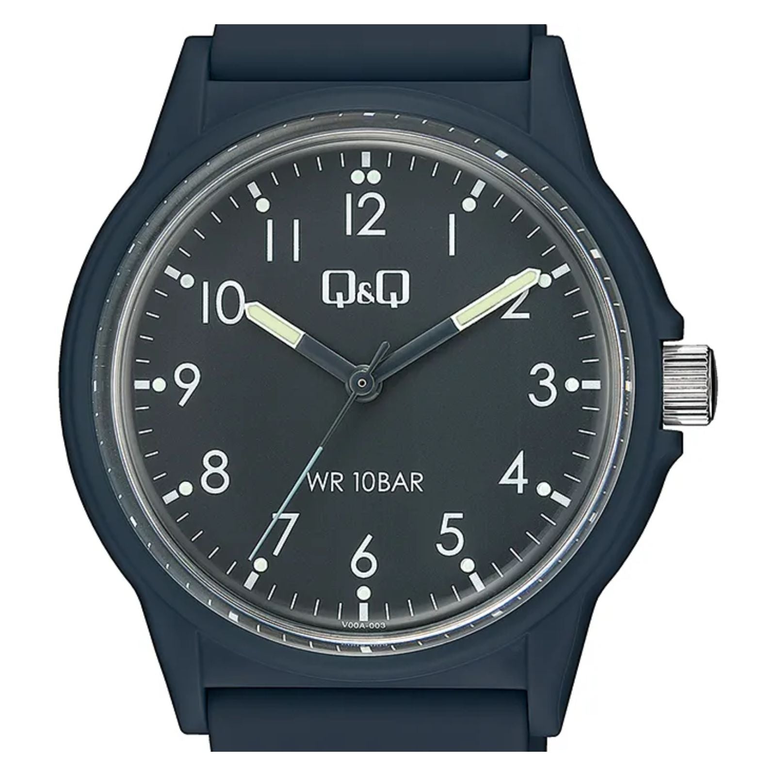 Reloj q&q v00a-003vy v00a-003vy para hombre, tamaño de la caja 39 mm de resina, tamaño del pulso 205 mm de resina, color azul, pulso de 205 mm, resistencia al agua hasta 100 metros