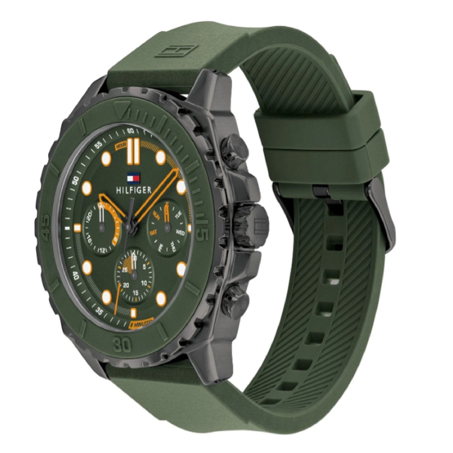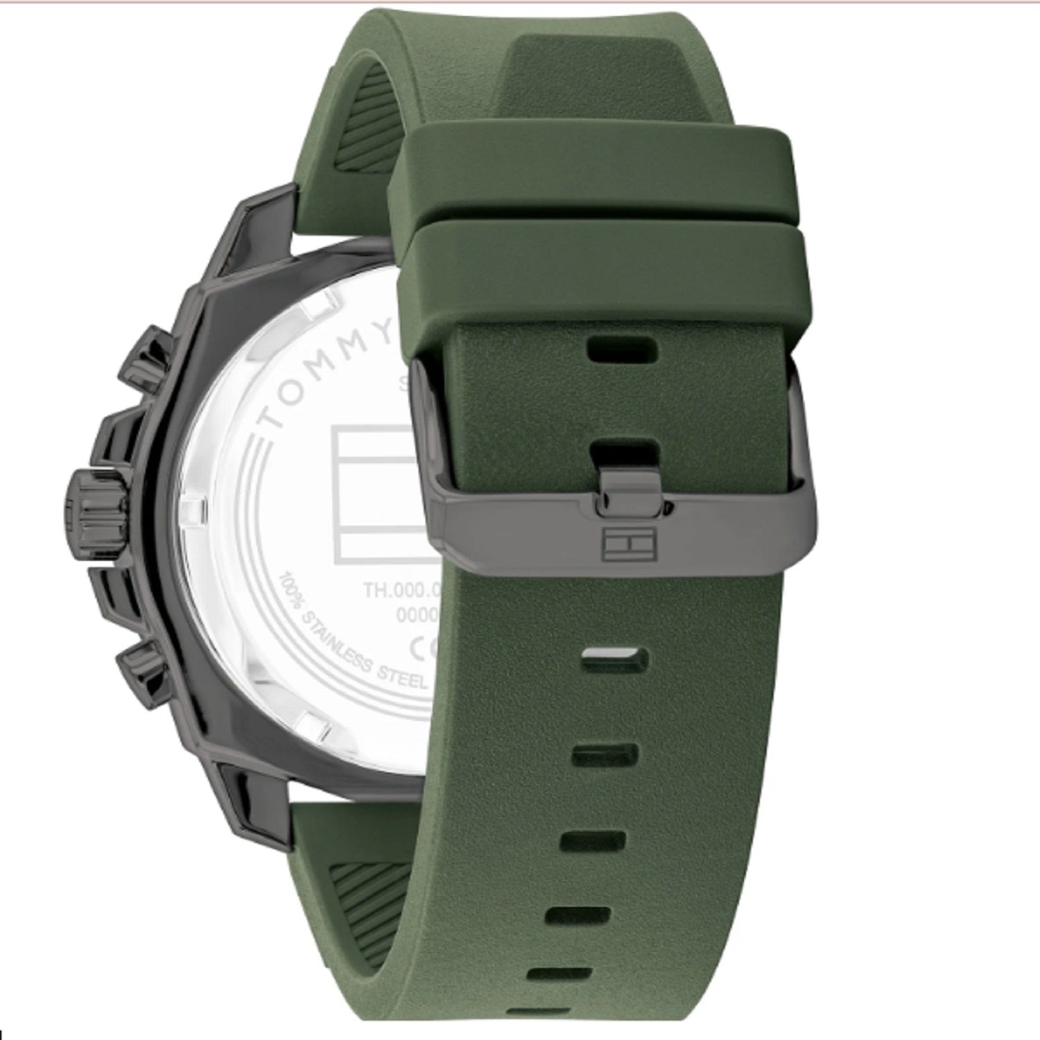 Reloj tommy hilfiger 1710688 morgan para hombre, tamaño de la caja 48 mm de acero inoxidable, tamaño del pulso 220 mm de silicona, color verde, pulso de 220 mm, resistencia al agua hasta 50 metros