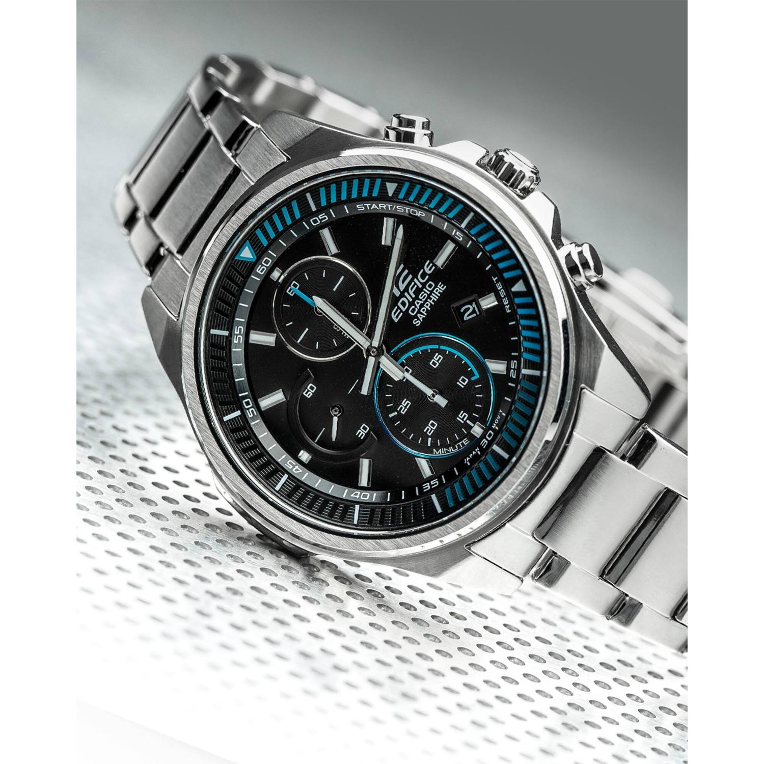 Reloj casio efrs572d-1avudf sapphire para hombre, tamaño de la caja 49 mm de acero inoxidable, tamaño del pulso 220 mm de acero inoxidable, color plateado, pulso de 220 mm, resistencia al agua hasta 100 metros