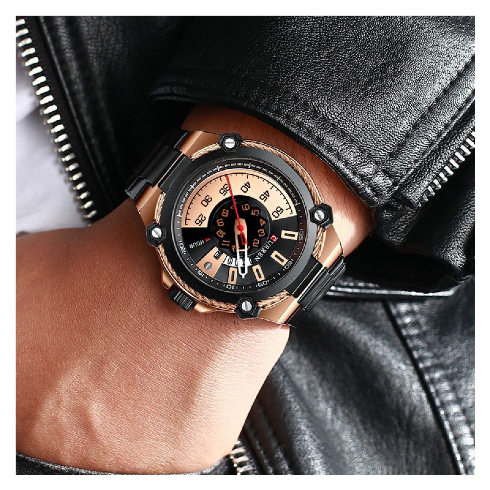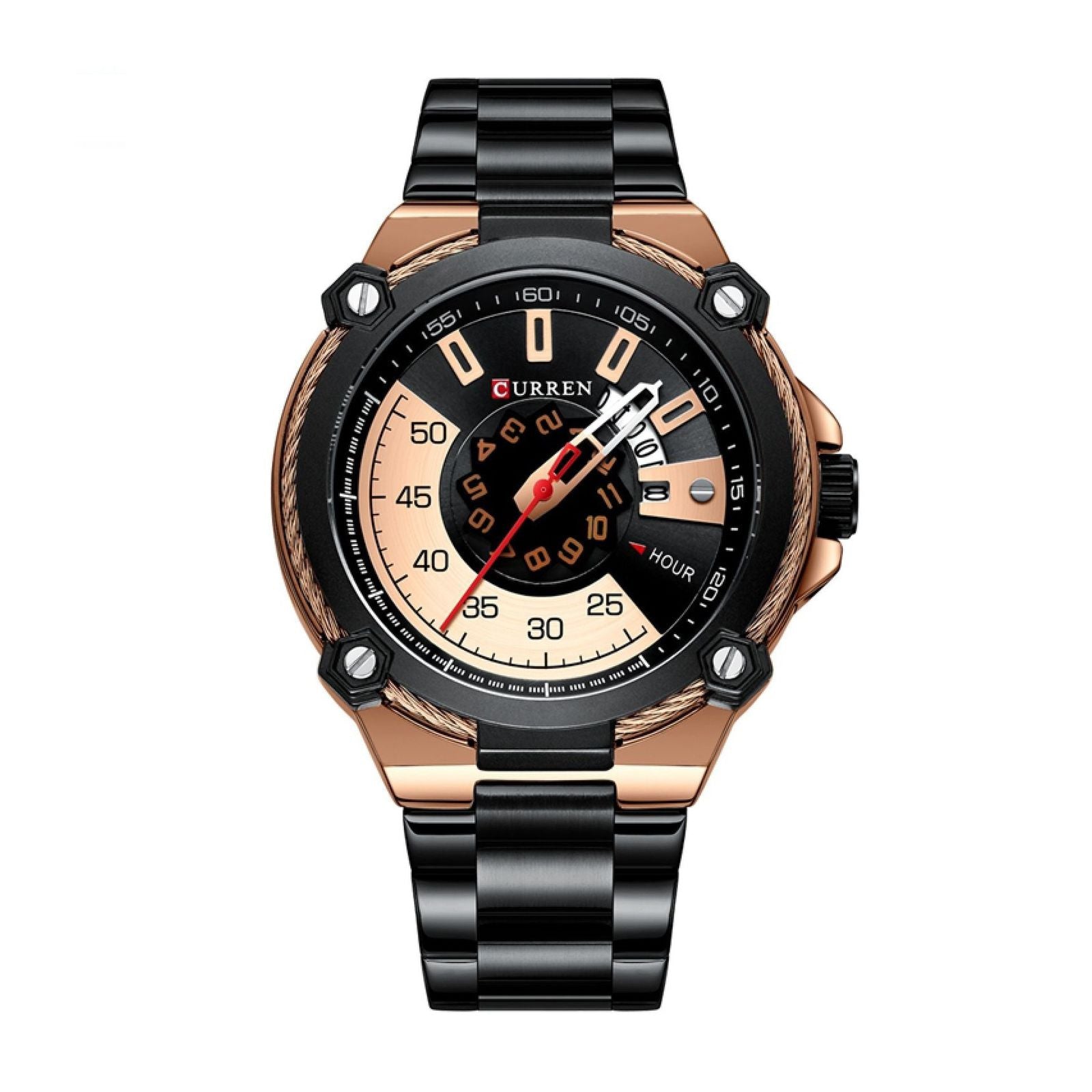 Curren tiene una amplia gama de relojes y que en su mayoría apuntan a los relojes sofisticados. Está hecho con una tecnología innovadora y de alta precisión que proporciona el tiempo de mantenimiento en comparación con los demás viene grabados en la parte superior e inferior con su logo, igualmente en la hebilla y con una etiqueta atada a un extremo del reloj que los identifica.