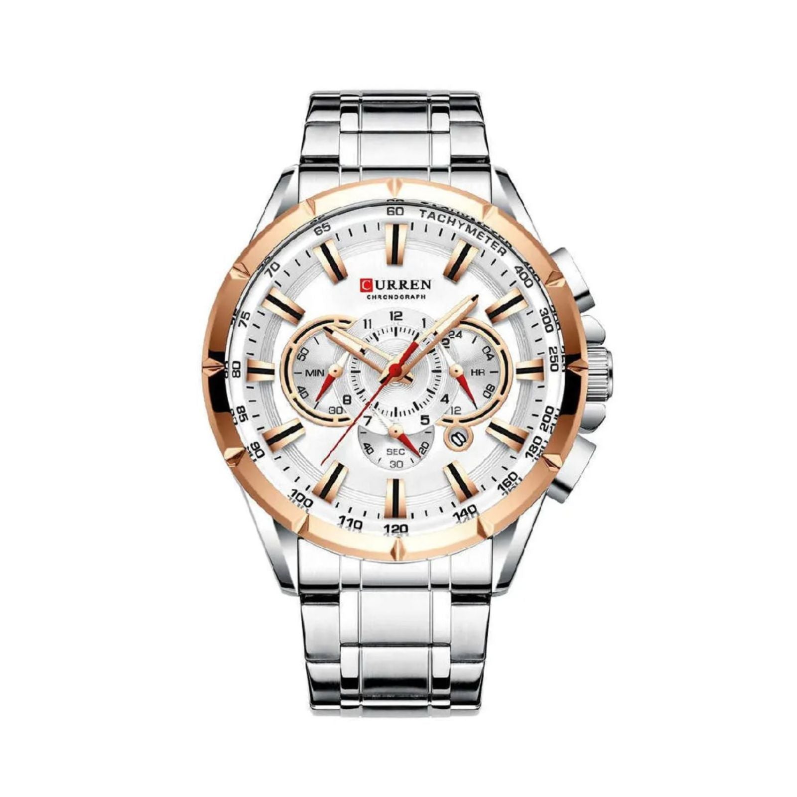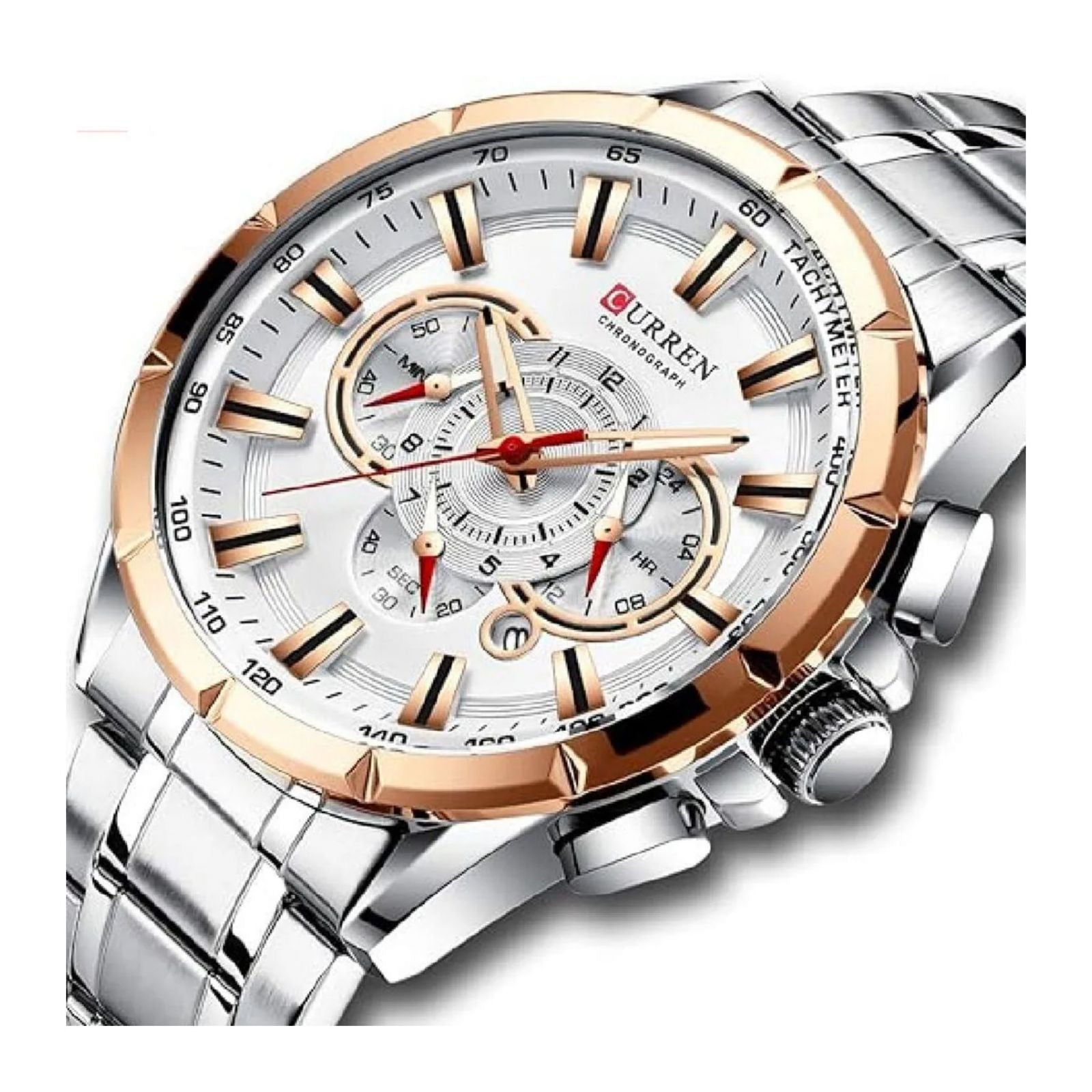 Curren tiene una amplia gama de relojes y que en su mayoría apuntan a los relojes sofisticados. Está hecho con una tecnología innovadora y de alta precisión que proporciona el tiempo de mantenimiento en comparación con los demás viene grabados en la parte superior e inferior con su logo, igualmente en la hebilla y con una etiqueta atada a un extremo del reloj que los identifica.