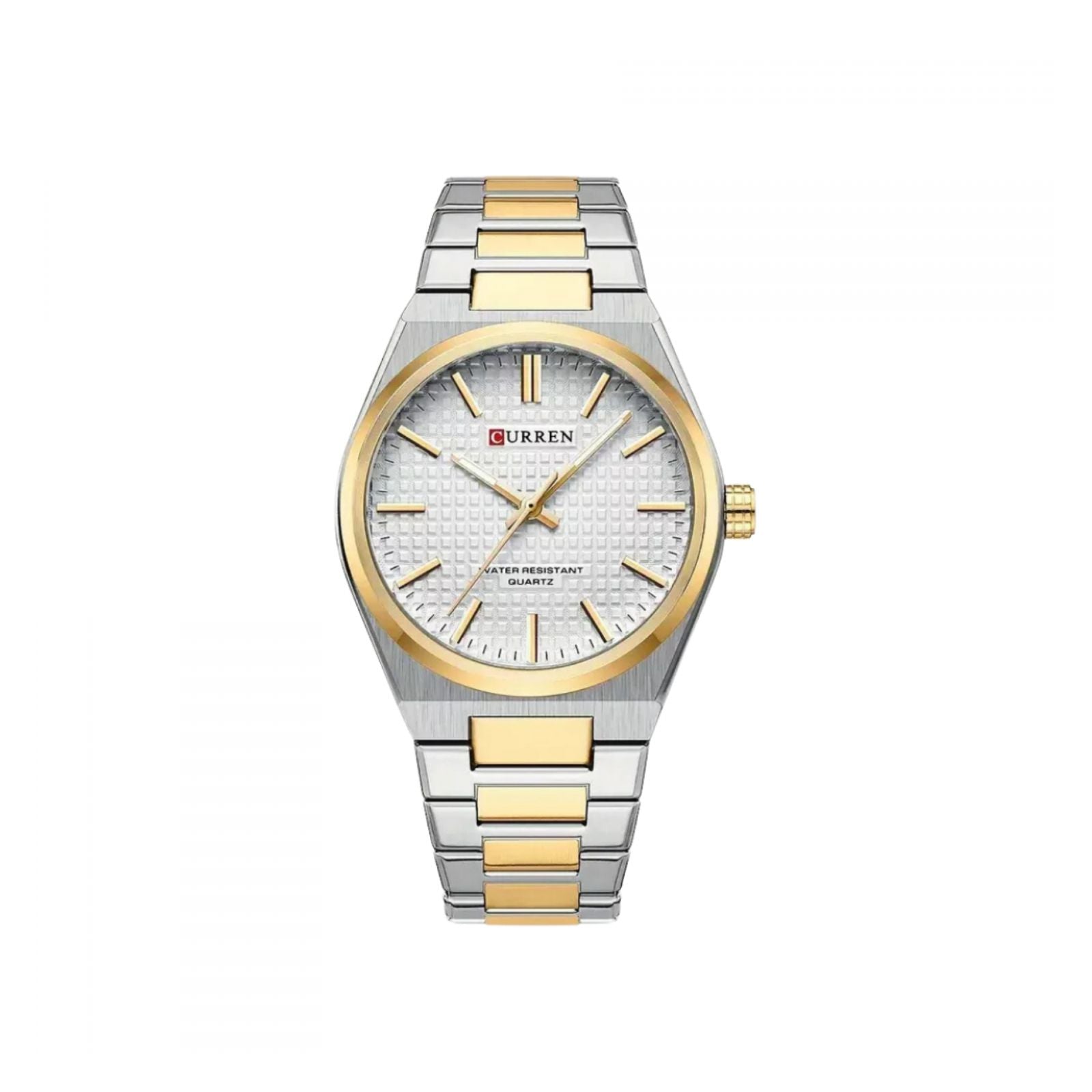 Curren tiene una amplia gama de relojes y que en su mayoría apuntan a los relojes sofisticados. Está hecho con una tecnología innovadora y de alta precisión que proporciona el tiempo de mantenimiento en comparación con los demás viene grabados en la parte superior e inferior con su logo, igualmente en la hebilla y con una etiqueta atada a un extremo del reloj que los identifica.