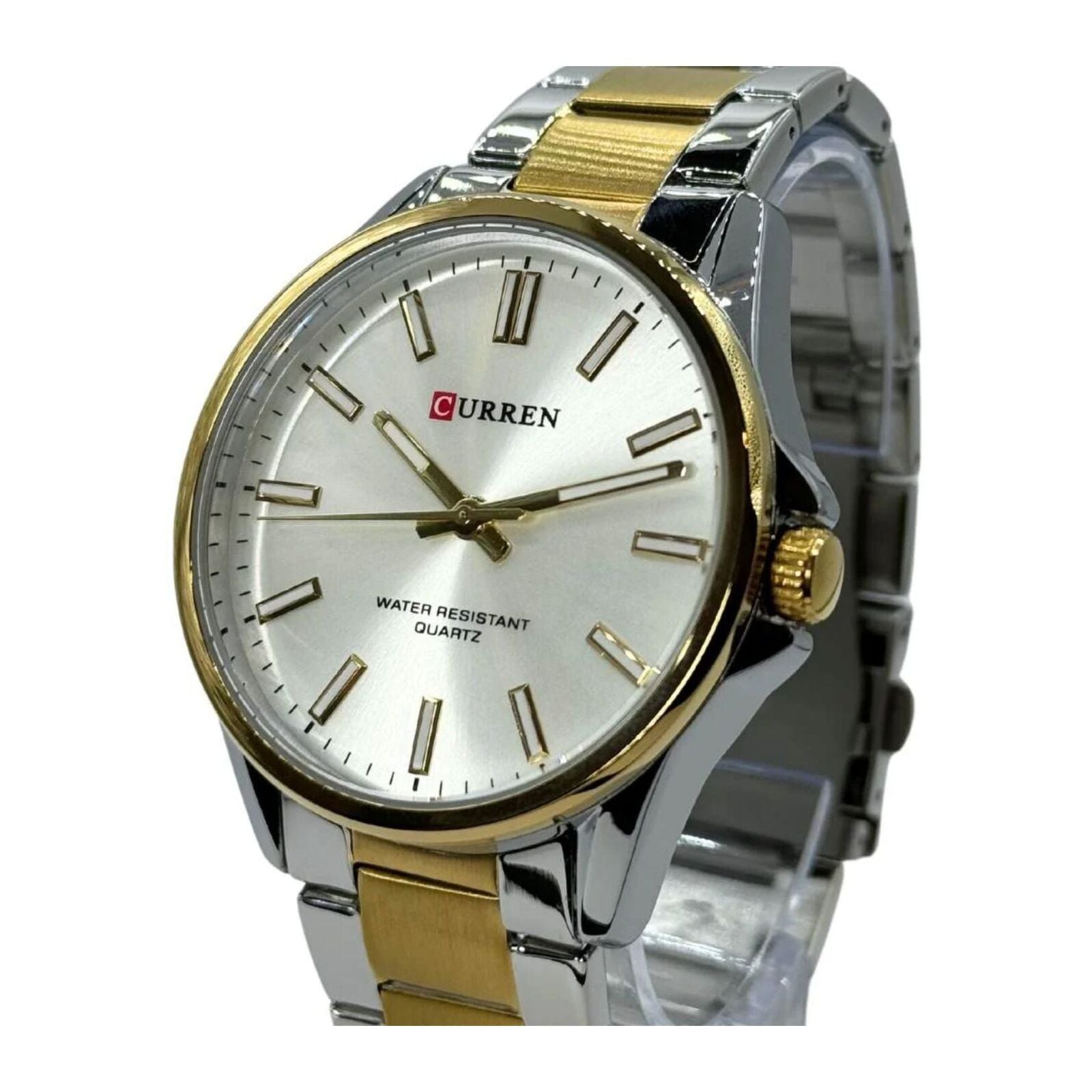 Curren tiene una amplia gama de relojes y que en su mayoría apuntan a los relojes sofisticados. Está hecho con una tecnología innovadora y de alta precisión que proporciona el tiempo de mantenimiento en comparación con los demás viene grabados en la parte superior e inferior con su logo, igualmente en la hebilla y con una etiqueta atada a un extremo del reloj que los identifica.