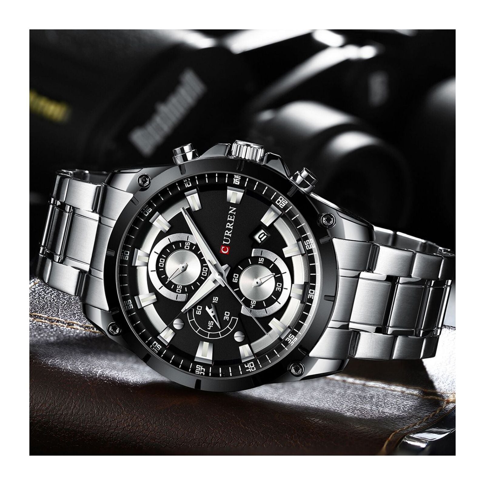 Curren tiene una amplia gama de relojes y que en su mayoría apuntan a los relojes sofisticados. Está hecho con una tecnología innovadora y de alta precisión que proporciona el tiempo de mantenimiento en comparación con los demás viene grabados en la parte superior e inferior con su logo, igualmente en la hebilla y con una etiqueta atada a un extremo del reloj que los identifica.
