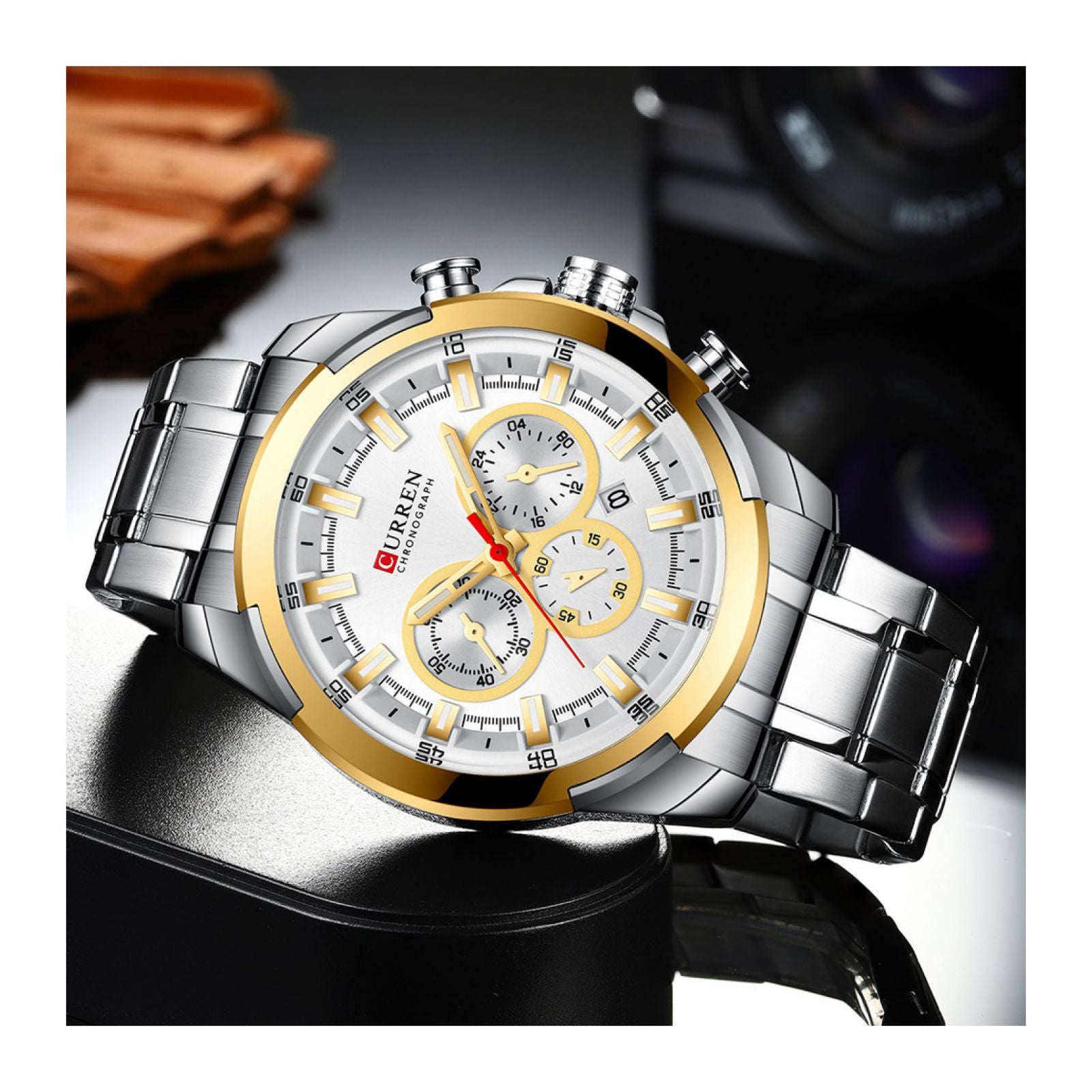 Curren tiene una amplia gama de relojes y que en su mayoría apuntan a los relojes sofisticados. Está hecho con una tecnología innovadora y de alta precisión que proporciona el tiempo de mantenimiento en comparación con los demás viene grabados en la parte superior e inferior con su logo, igualmente en la hebilla y con una etiqueta atada a un extremo del reloj que los identifica.