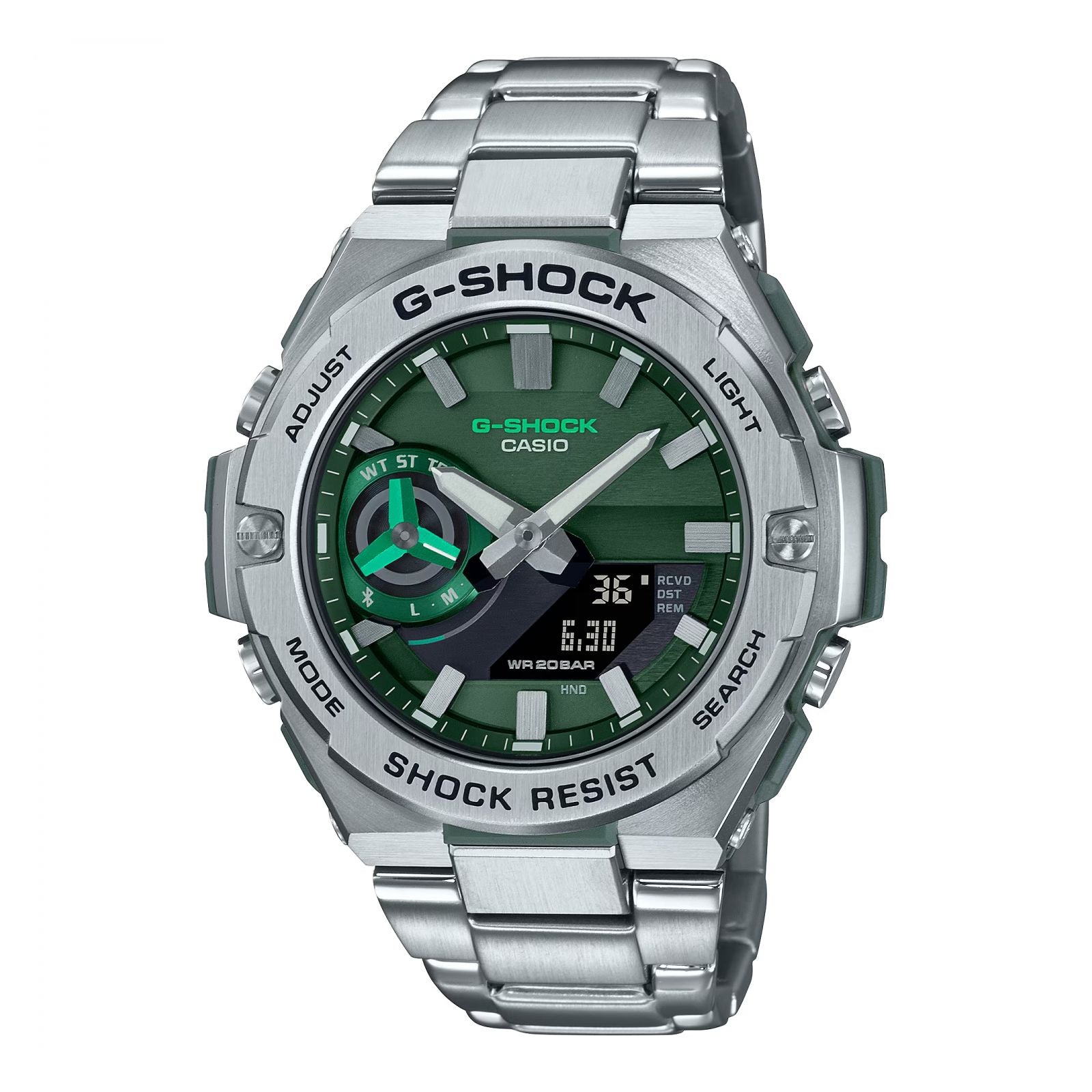 • ShortDescription: Reloj G-Shock modelo GST-B500AD-3ADR para Hombre, color plateado de acero inoxidable, resistencia al agua hasta 200m.