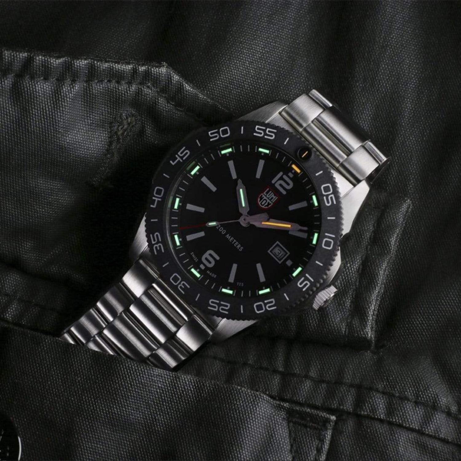 Reloj luminox xs.3122 pacific diver para hombre, tamaño de la caja 44 mm de acero inoxidable, tamaño del pulso 220 mm de acero inoxidable, color plateado, pulso de 220 mm, resistencia al agua hasta 200 metros