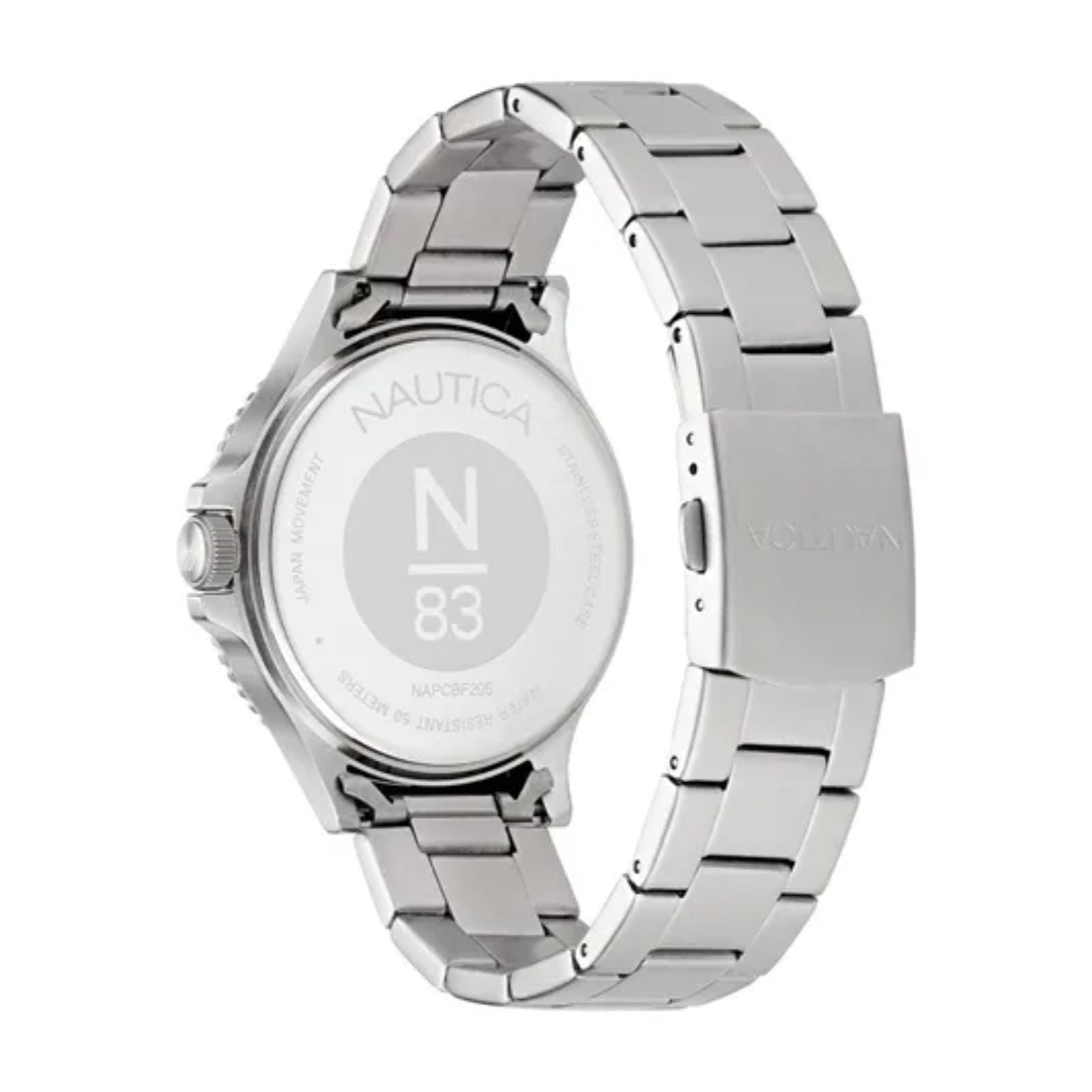 Reloj nautica napcbf205 cocoa beach para hombre, tamaño de la caja 43.5 mm de acero inoxidable, tamaño del pulso 20 mm de acero inoxidable, color plateado, pulso de 20 mm, resistencia al agua hasta 50 metros