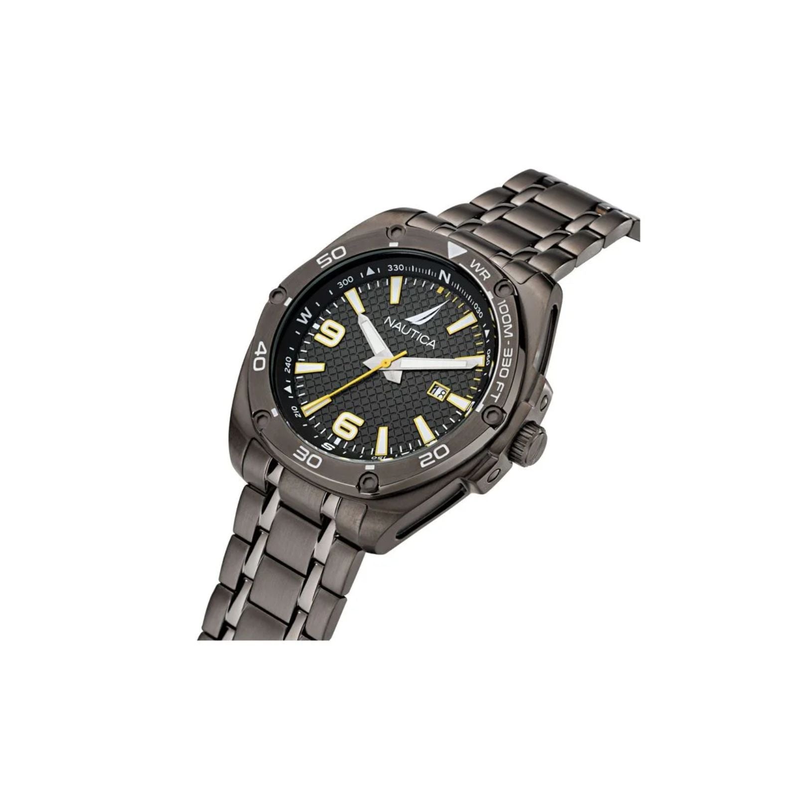Reloj nautica naptcf204 tin can bay 3h para hombre, tamaño de la caja 44 mm de acero inoxidable, tamaño del pulso 22 mm de acero inoxidable, color negro, pulso de 22 mm, resistencia al agua hasta 100 metros