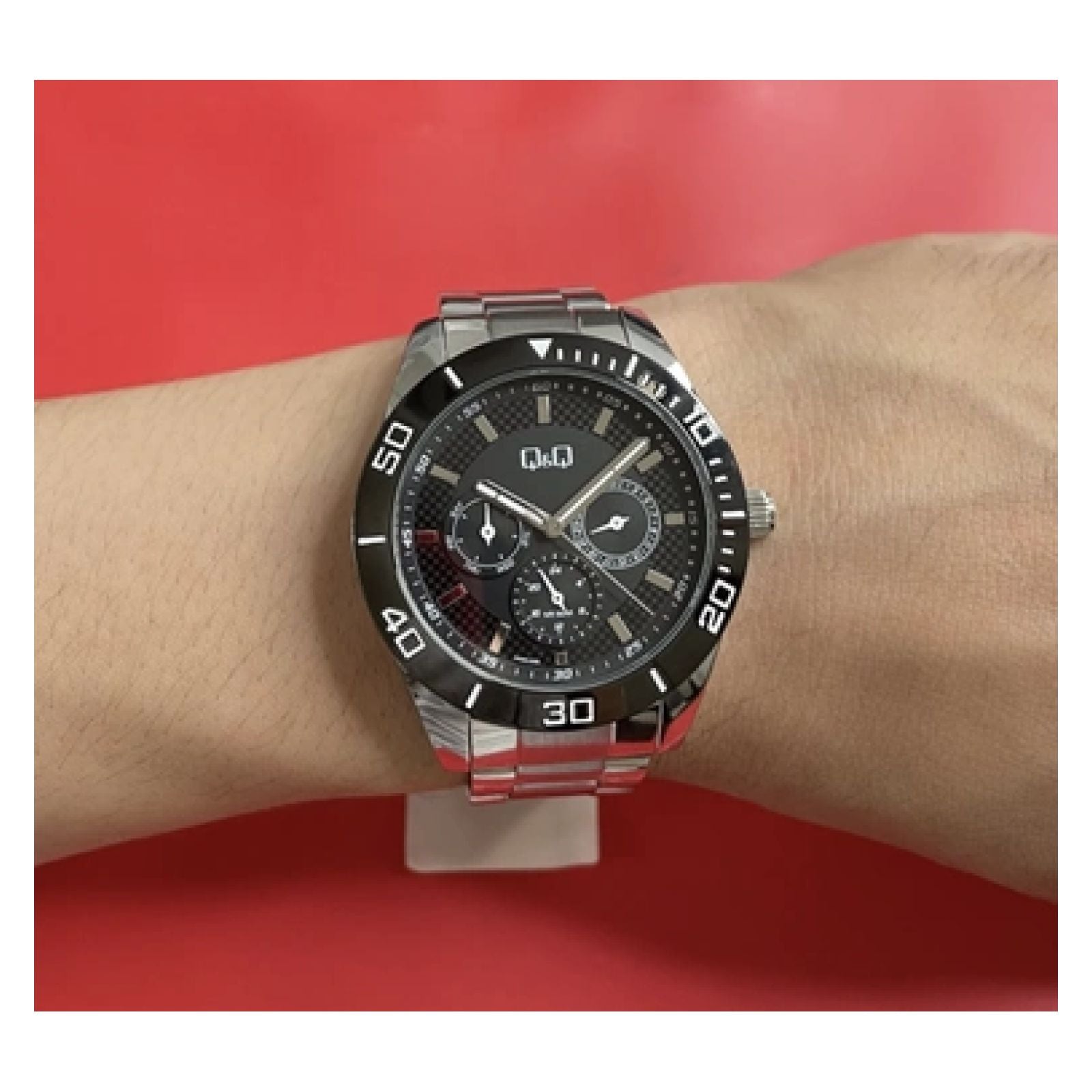 - ShortDescription: Reloj q&q para hombre, tamaño de la caja 43 de metal, tamaño del pulso 220 de acero inoxidable, color plateado, esfera negra, ancho del pulso de 22 , resistencia al agua hasta 30 metros