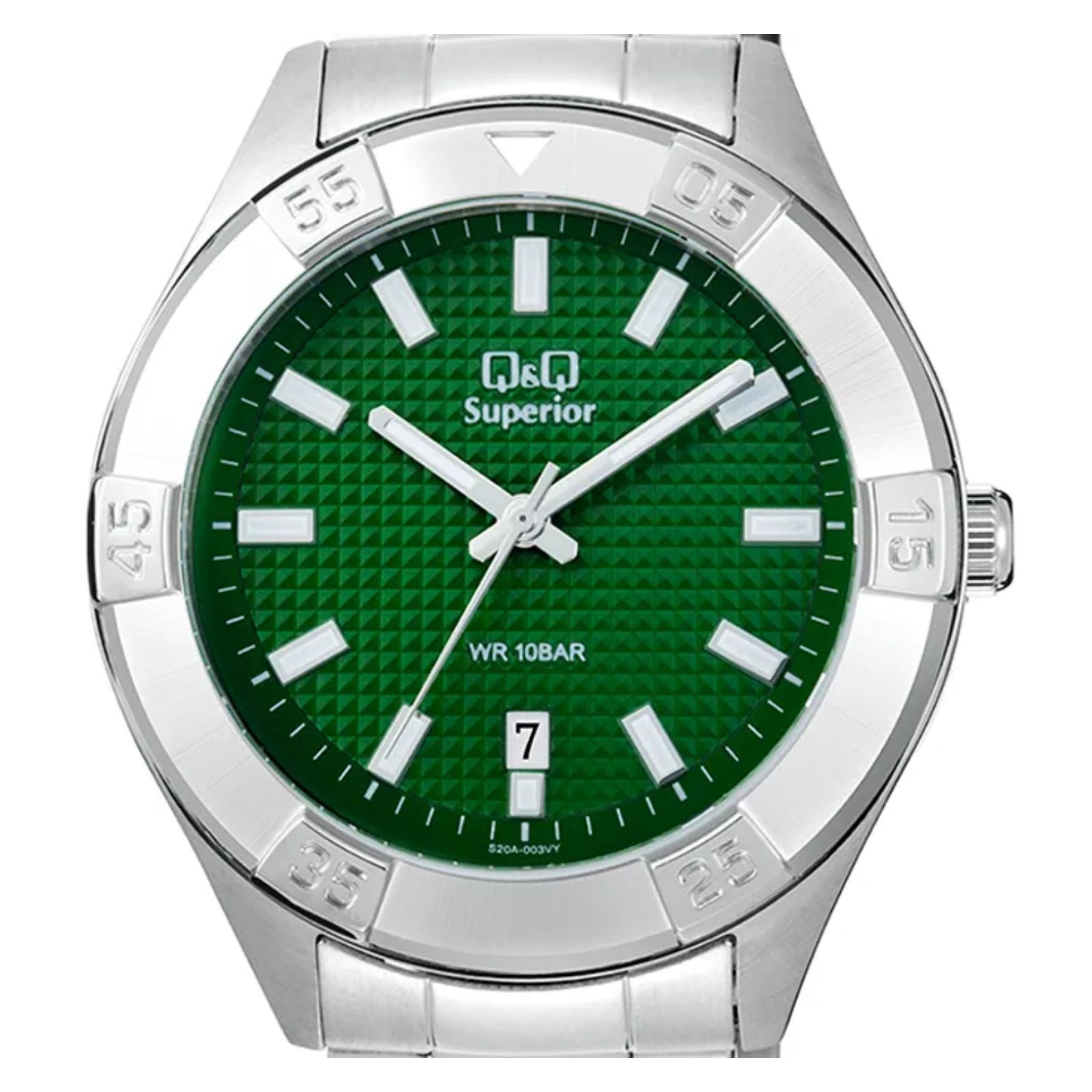 - ShortDescription: El Reloj S20A-003VY es un modelo robusto y elegante para el hombre moderno. Su diseño con caja de metal en color plateado, junto con su alta resistencia al agua de 10 bares.