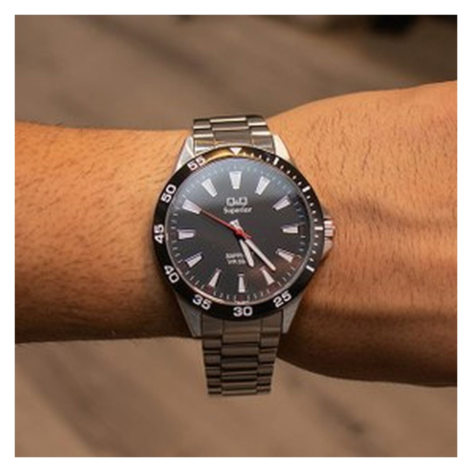 Reloj q&q s08a-001py superior para hombre, tamaño de la caja 40 mm de acero inoxidable, tamaño del pulso 220 mm de acero inoxidable, color plateado, pulso de 220 mm, resistencia al agua hasta 50 metros