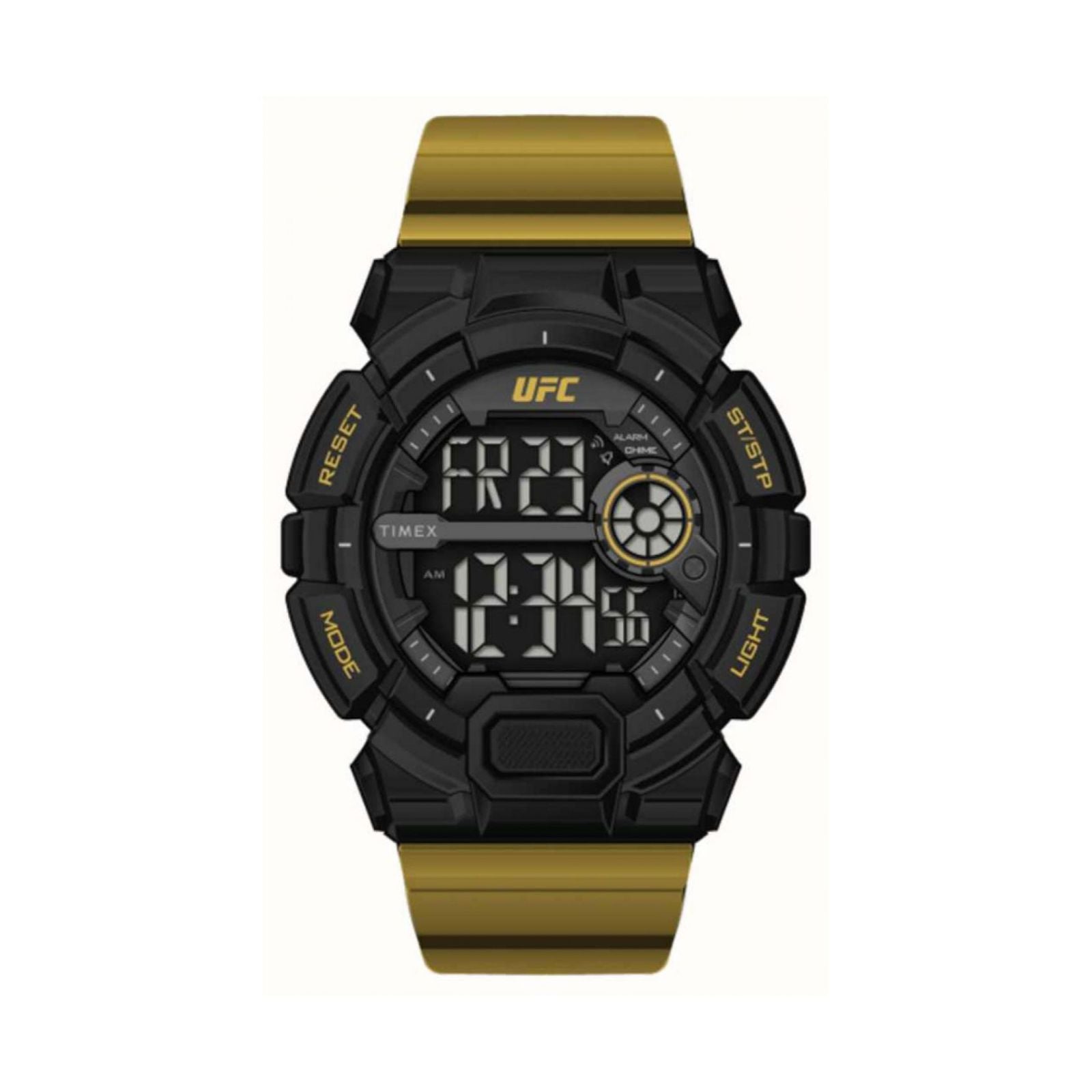 Reloj timex tw5m53600 ufc striker para hombre, tamaño de la caja 50 mm de resina, tamaño del pulso 220 mm de caucho, color dorado, pulso de 220 mm, resistencia al agua hasta 50 metros
