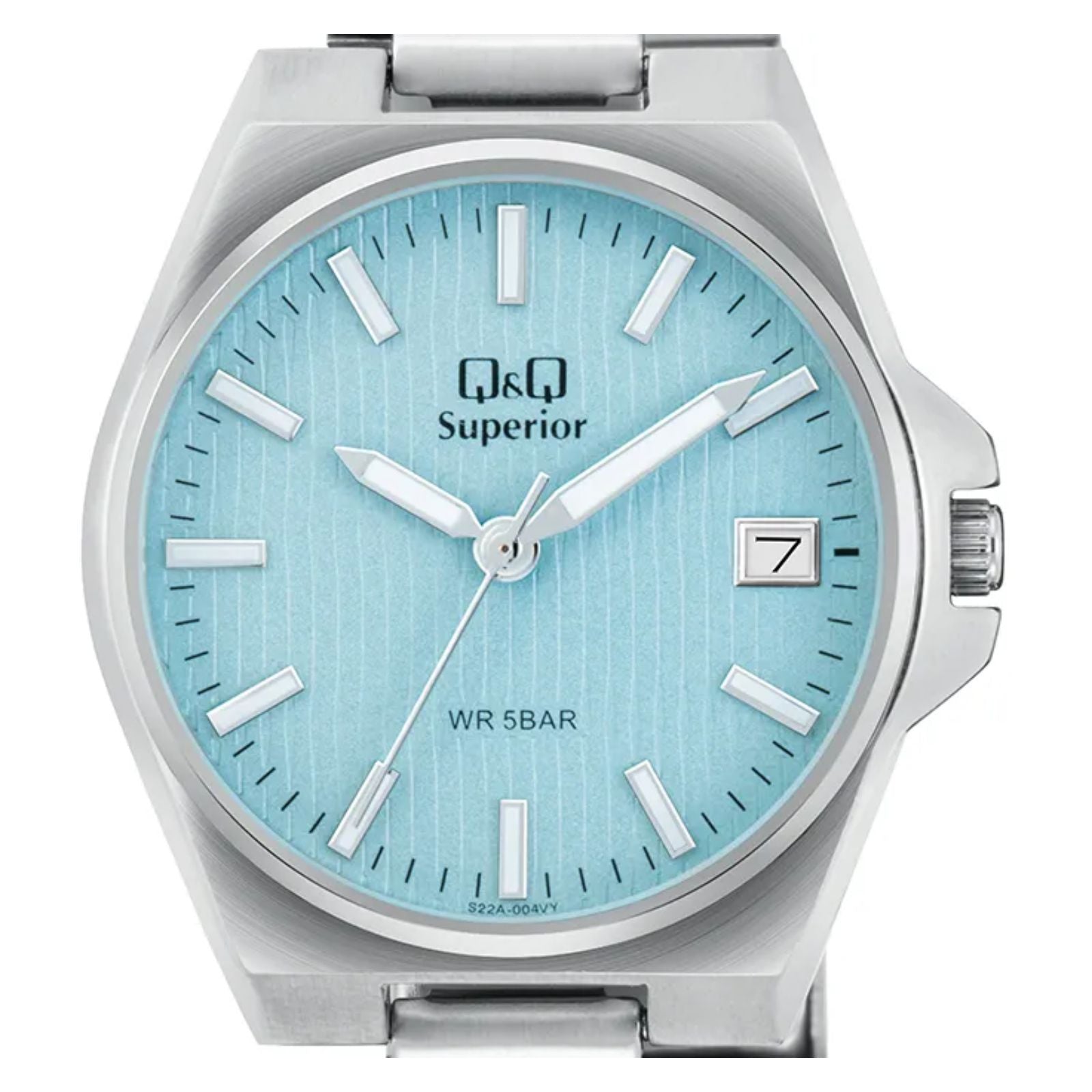 - ShortDescription: Reloj Q&Q S22A-004VY para Mujer tamaño de la caja 30 mm, de Metal color Plata, celeste y resistencia al agua hasta 5 ATM